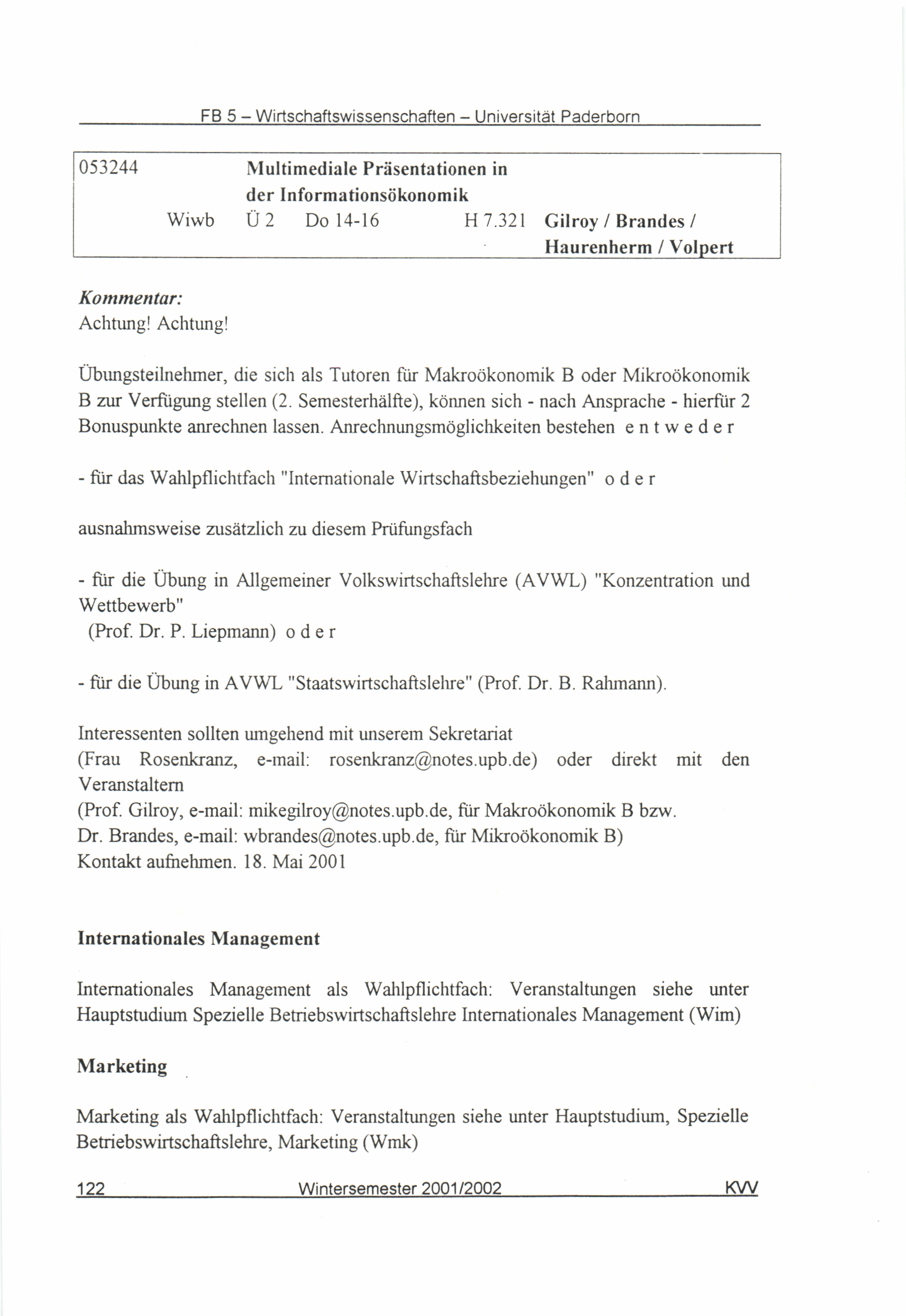 (2001-2002) Wintersemester 2001/2002