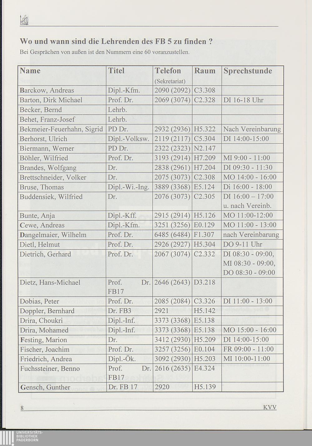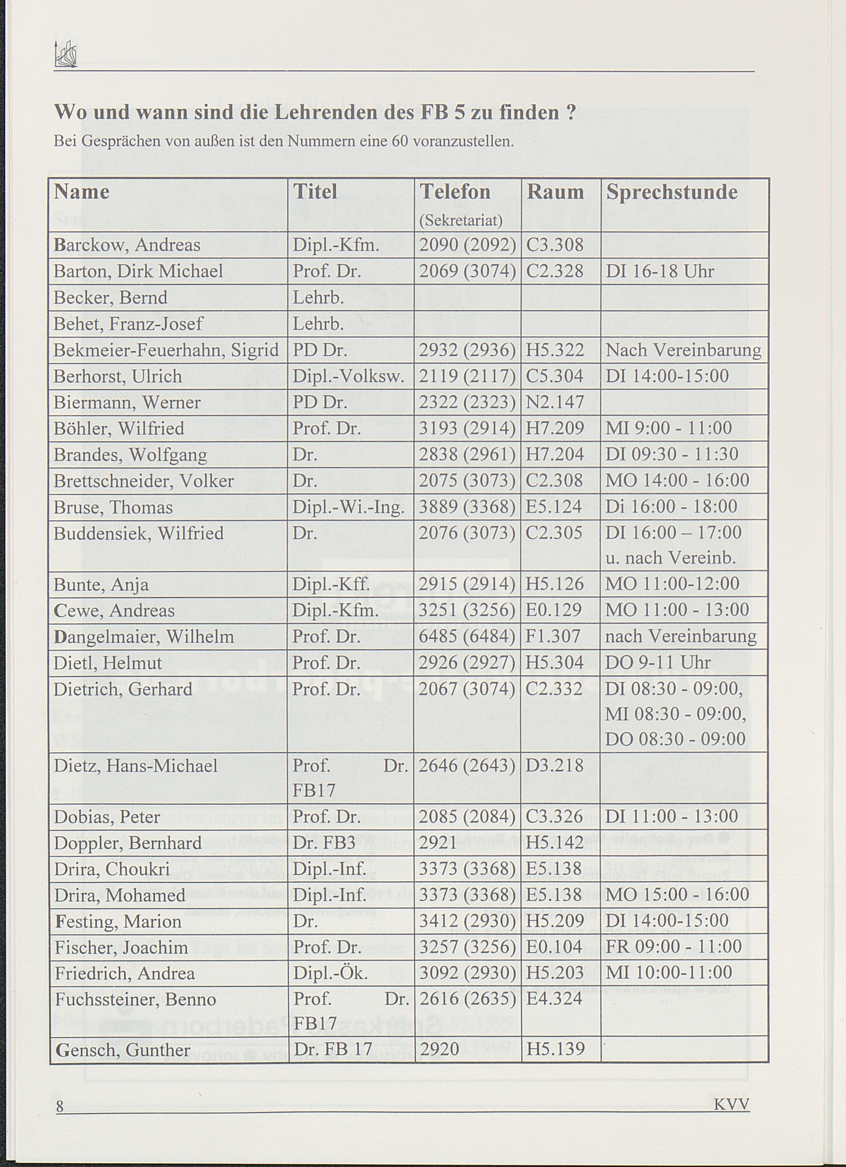 Wo und wann sind die Lehrenden des FB 5 zu finden?