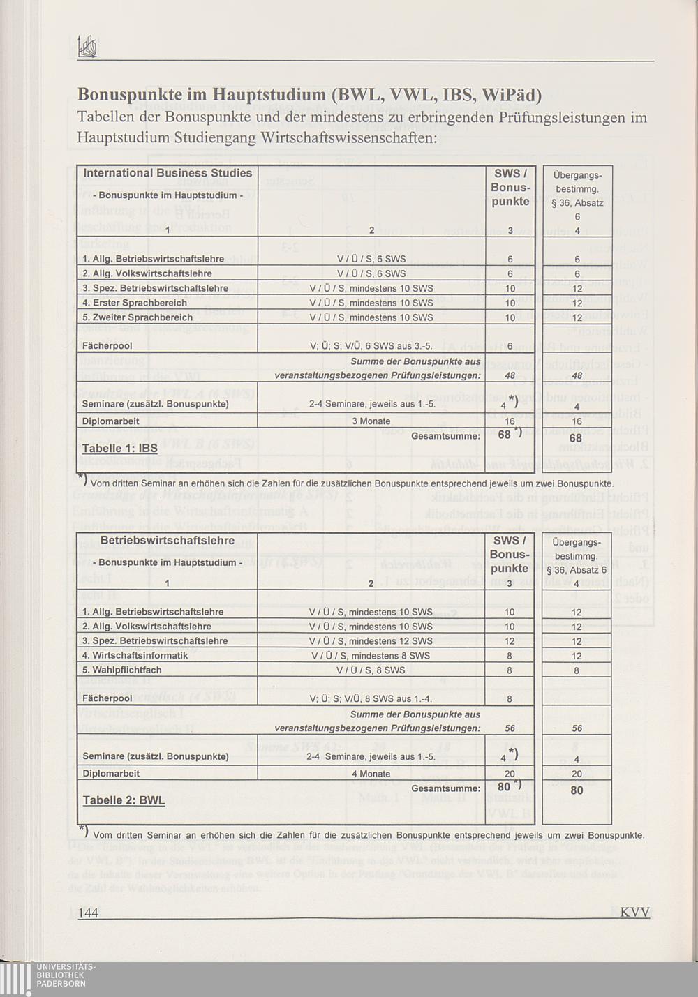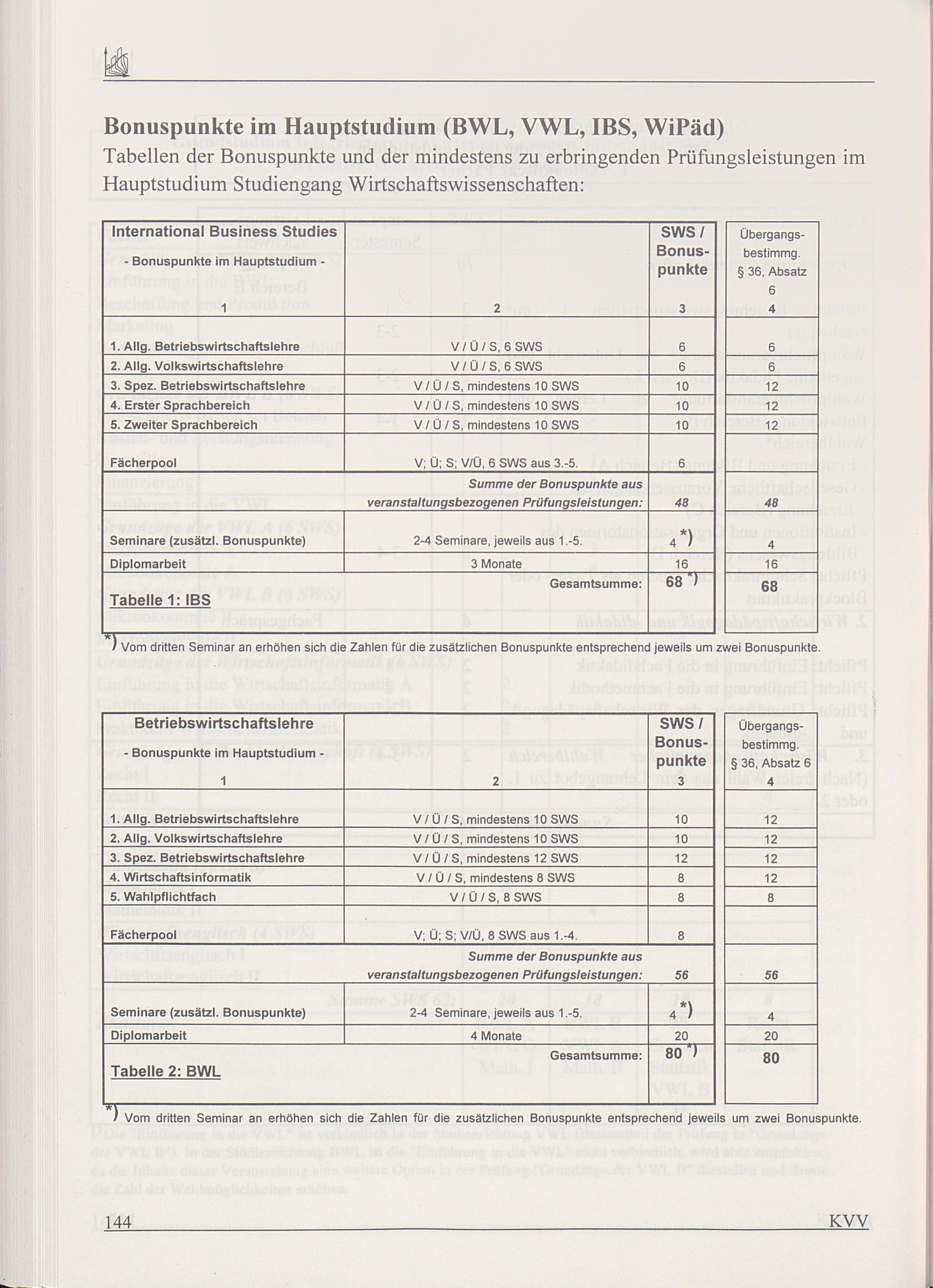 Bonuspunkte im Hauptstudium (BWL, VWL, IBS, WiPäd)