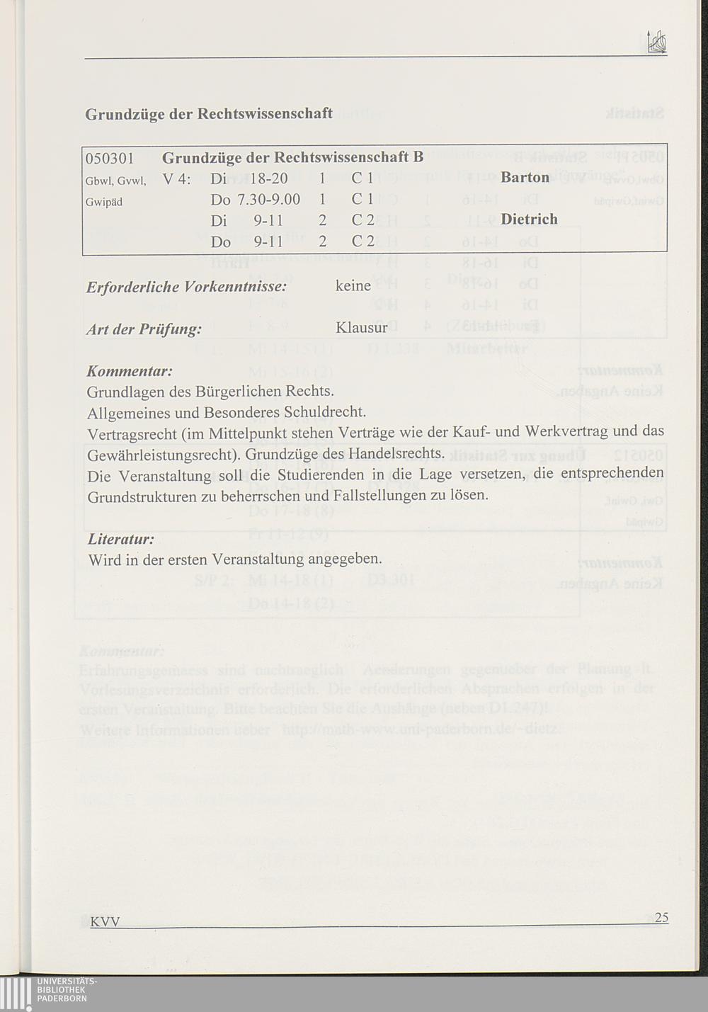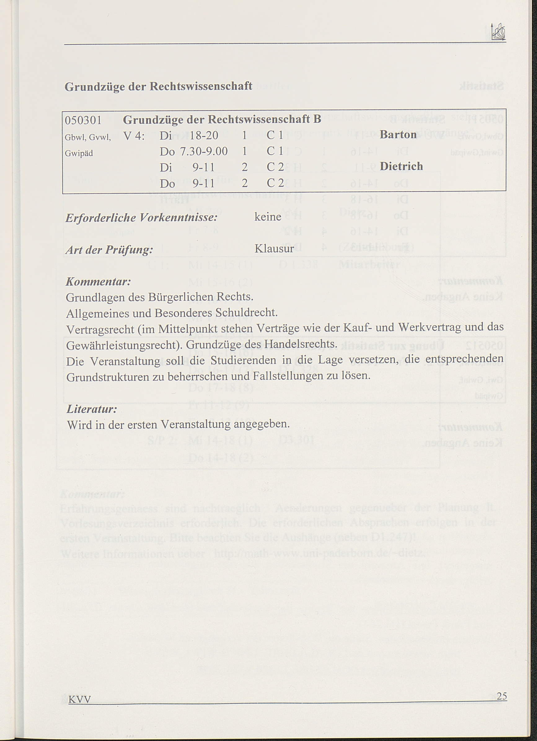 Kommentiertes Vorlesungsverzeichnis