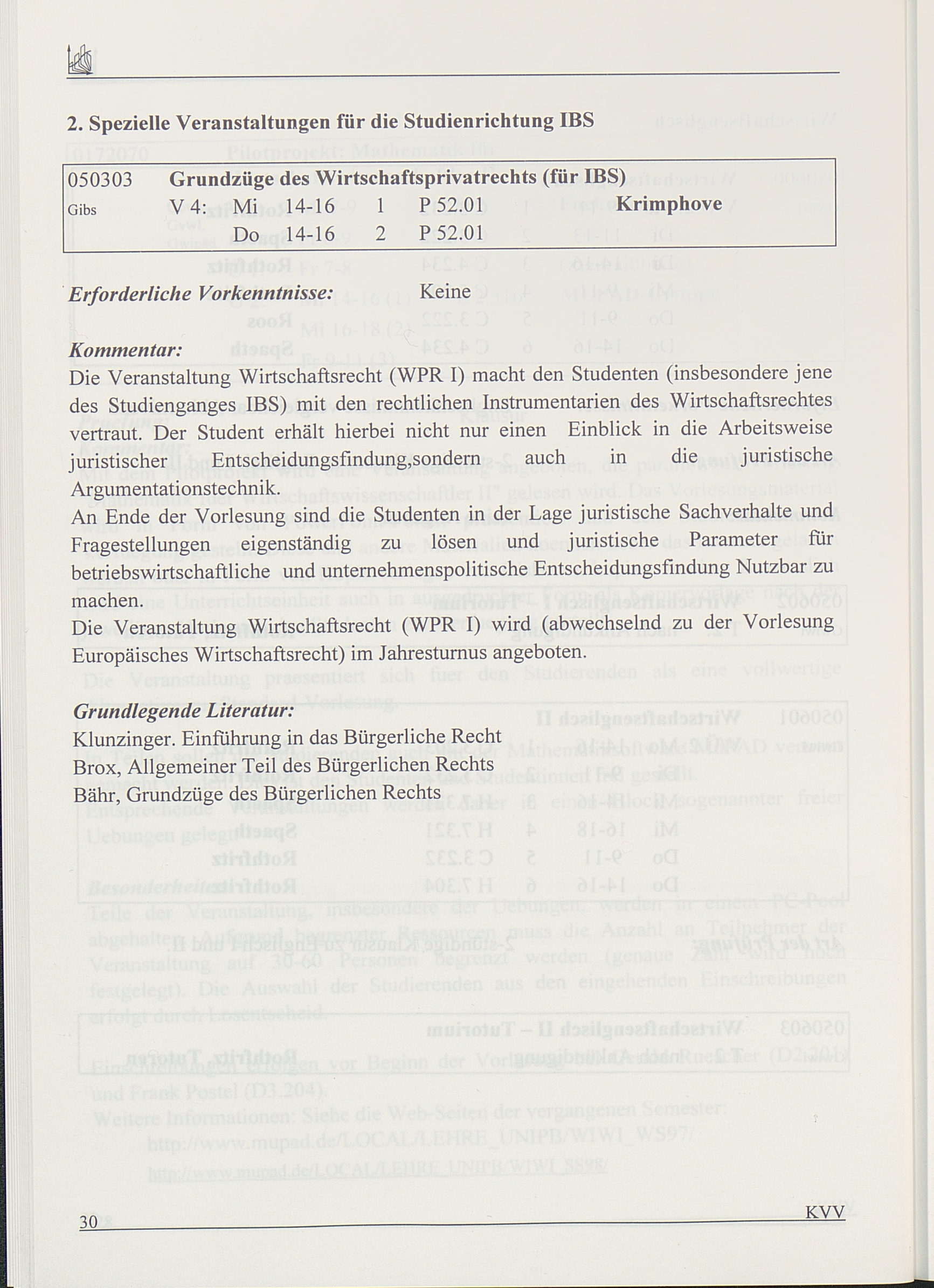 2. Spezielle Veranstaltungen für die Studienrichtung IBS