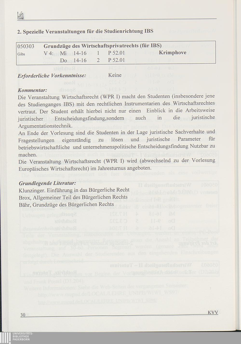 B. Integriertes Grundstudium für die Studiengänge Wirtschaftswissenschaften (IBS,[...]