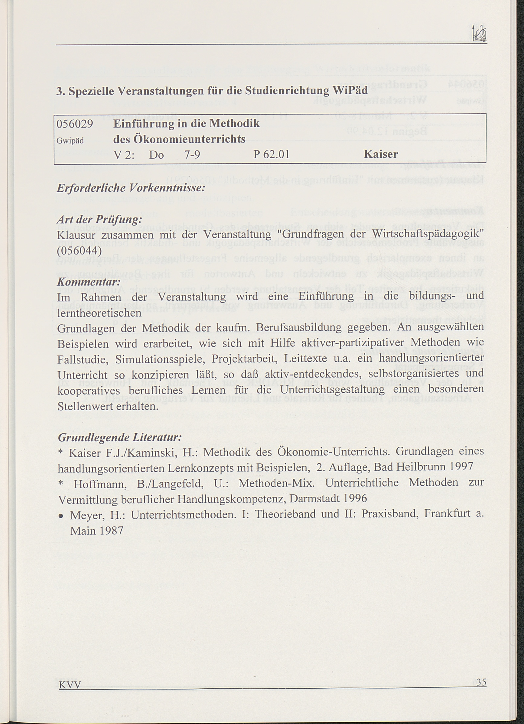 Kommentiertes Vorlesungsverzeichnis