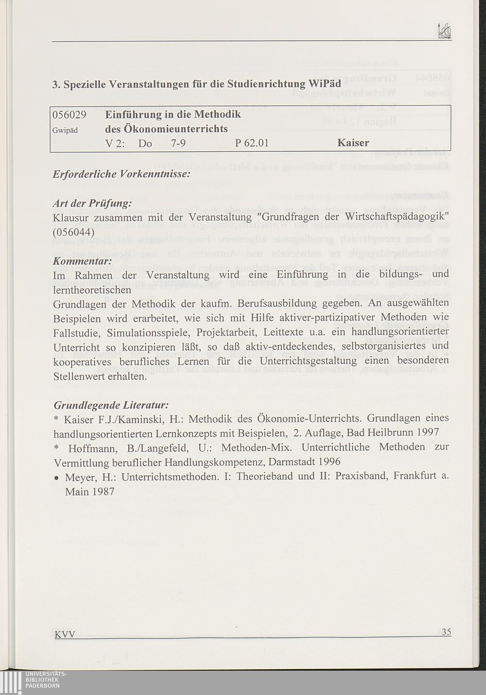 3. Spezielle Veranstaltungen für die Studienrichtung WiPäd