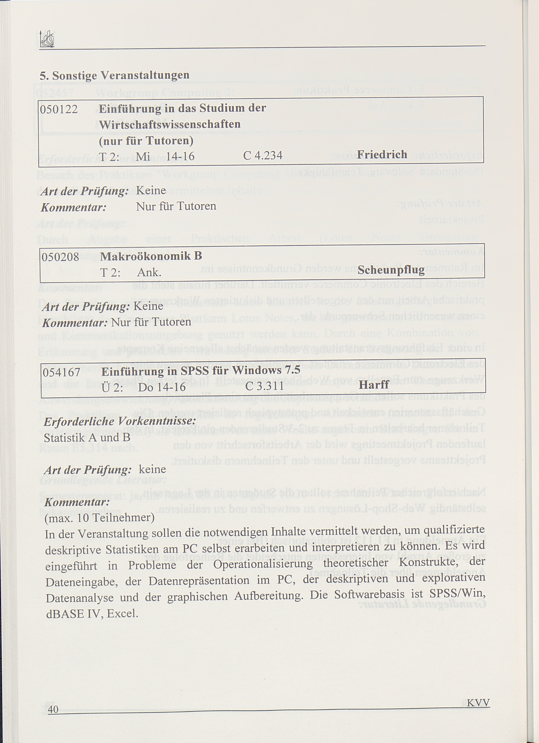 Kommentiertes Vorlesungsverzeichnis