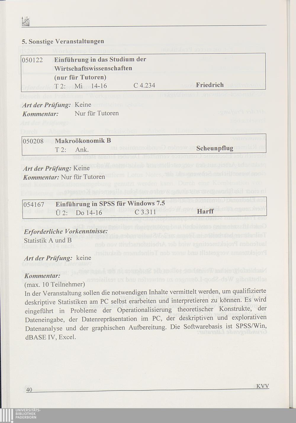 B. Integriertes Grundstudium für die Studiengänge Wirtschaftswissenschaften (IBS,[...]