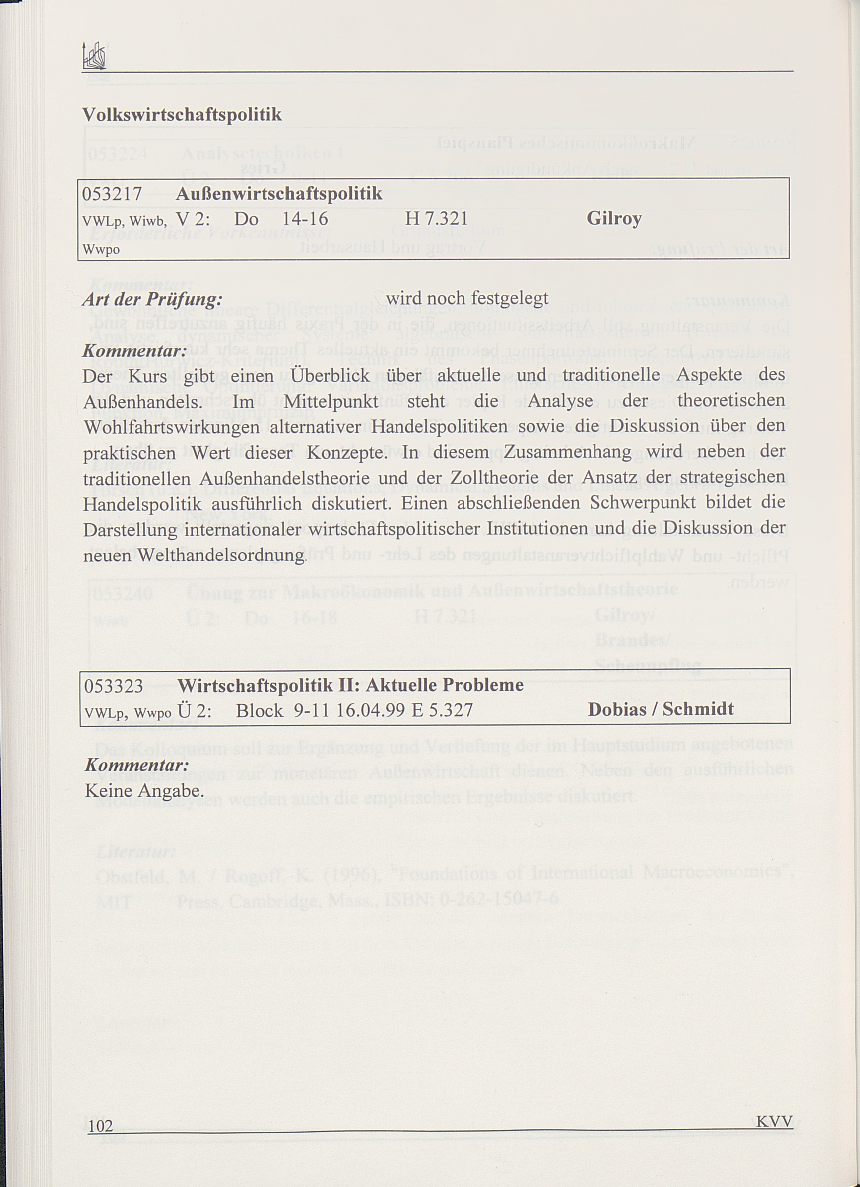 Kommentiertes Vorlesungsverzeichnis