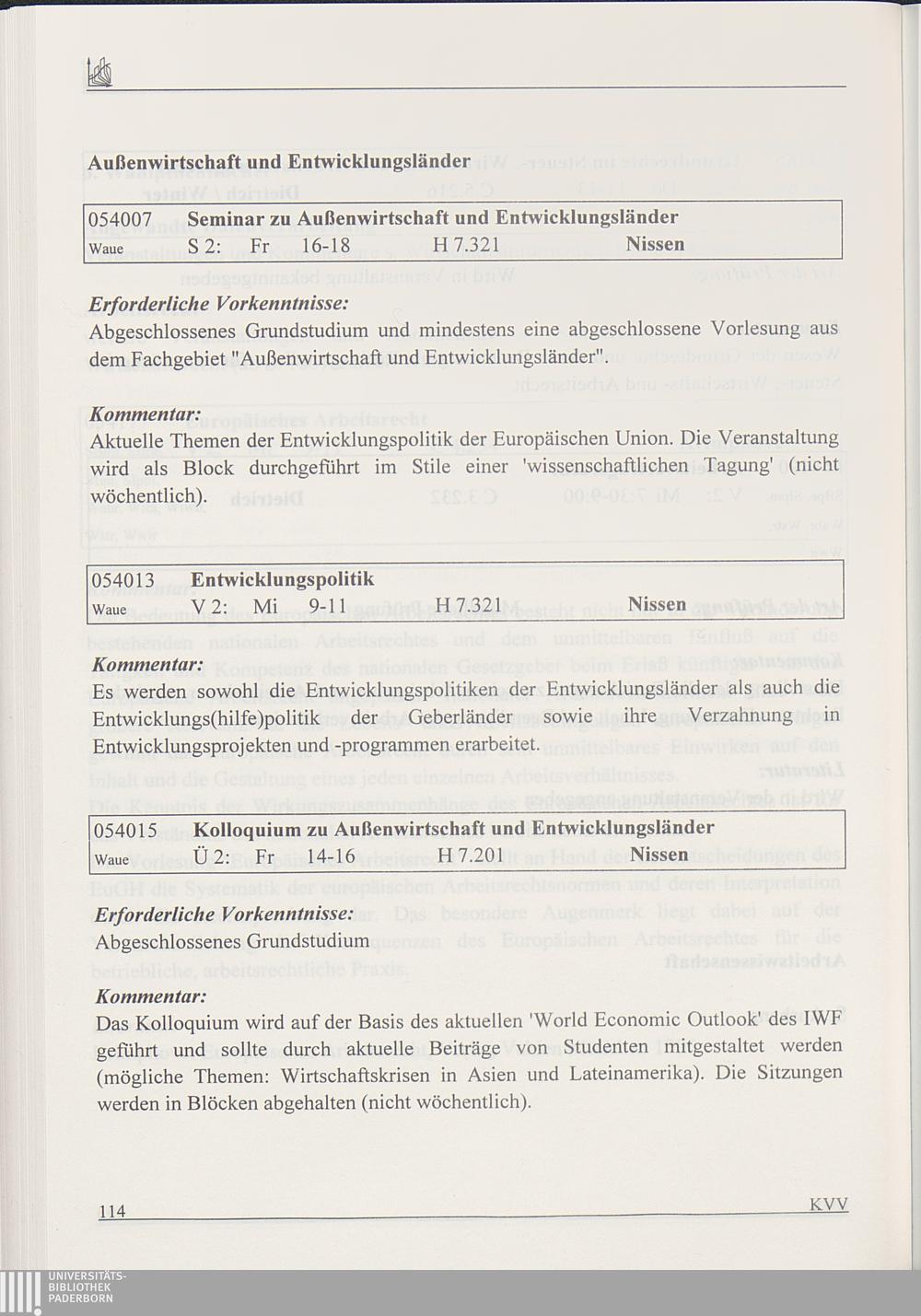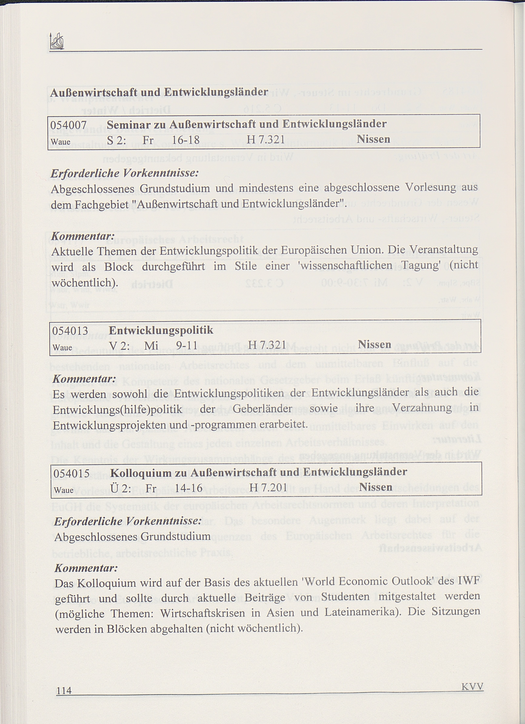 Kommentiertes Vorlesungsverzeichnis