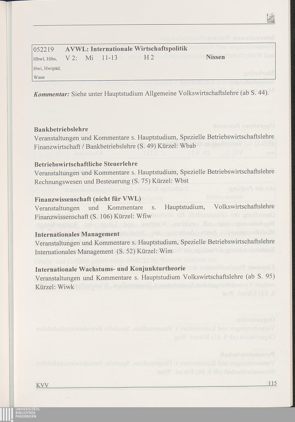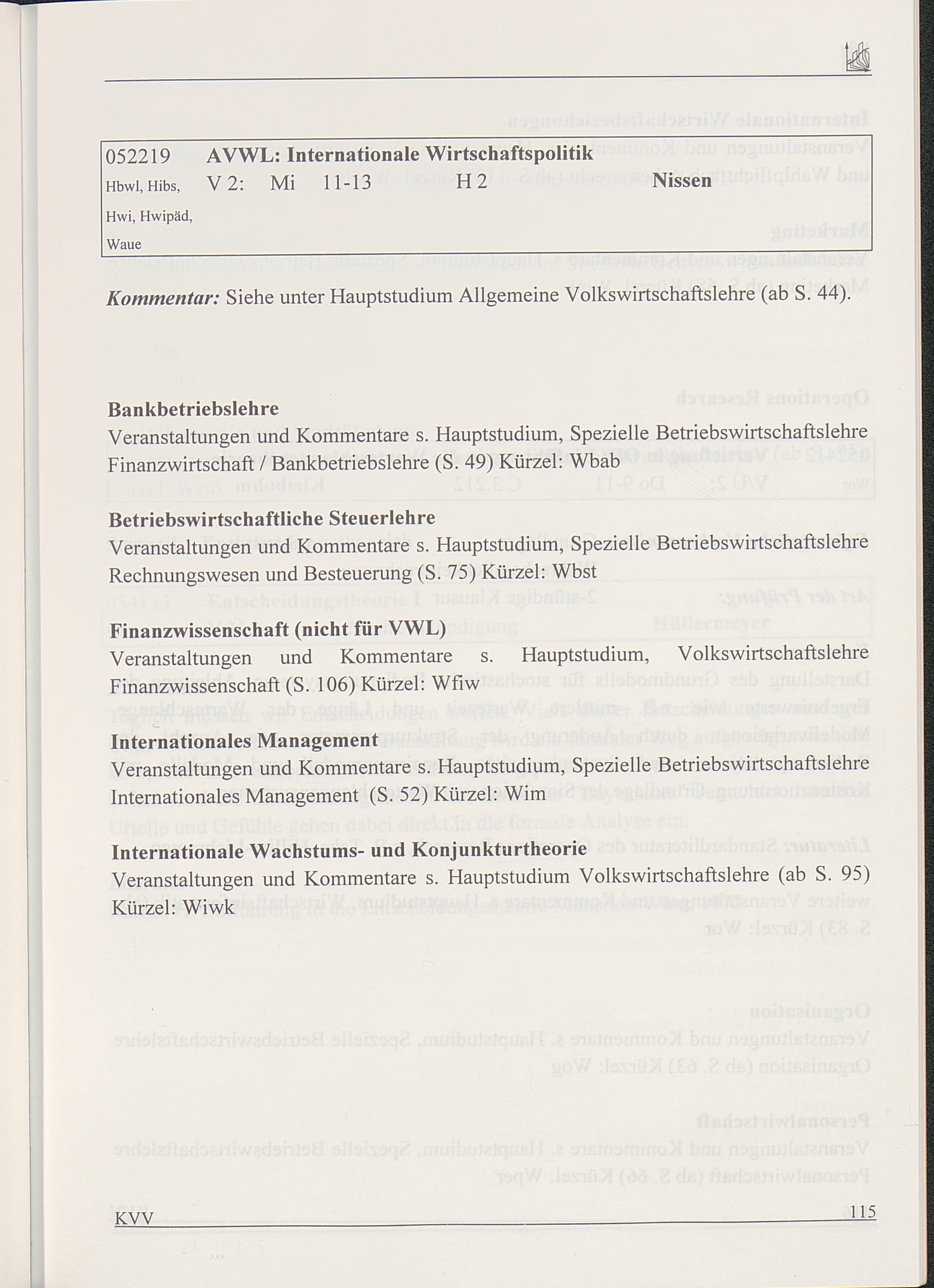 Kommentiertes Vorlesungsverzeichnis