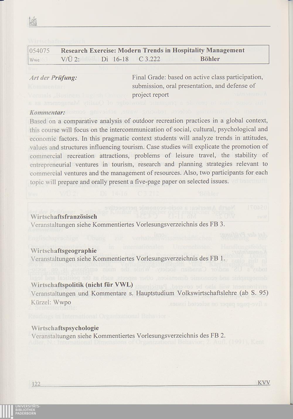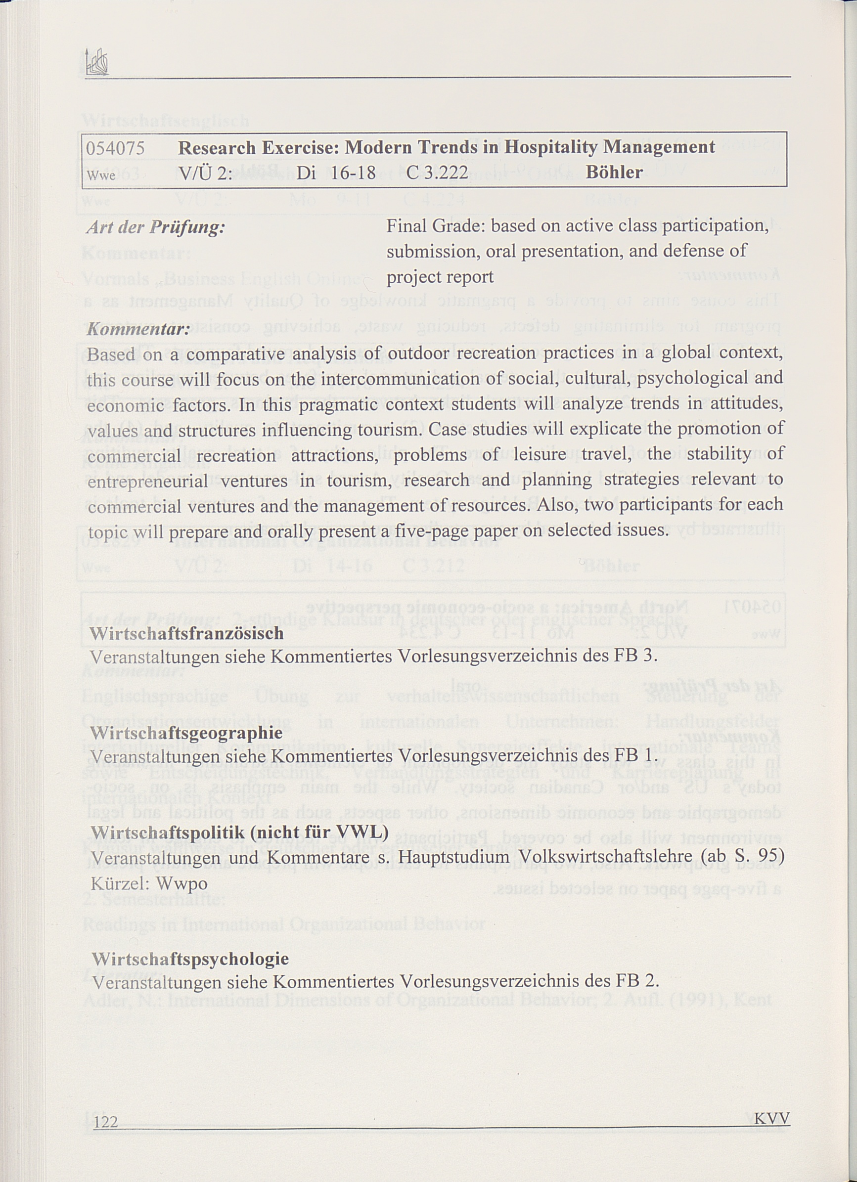 Kommentiertes Vorlesungsverzeichnis