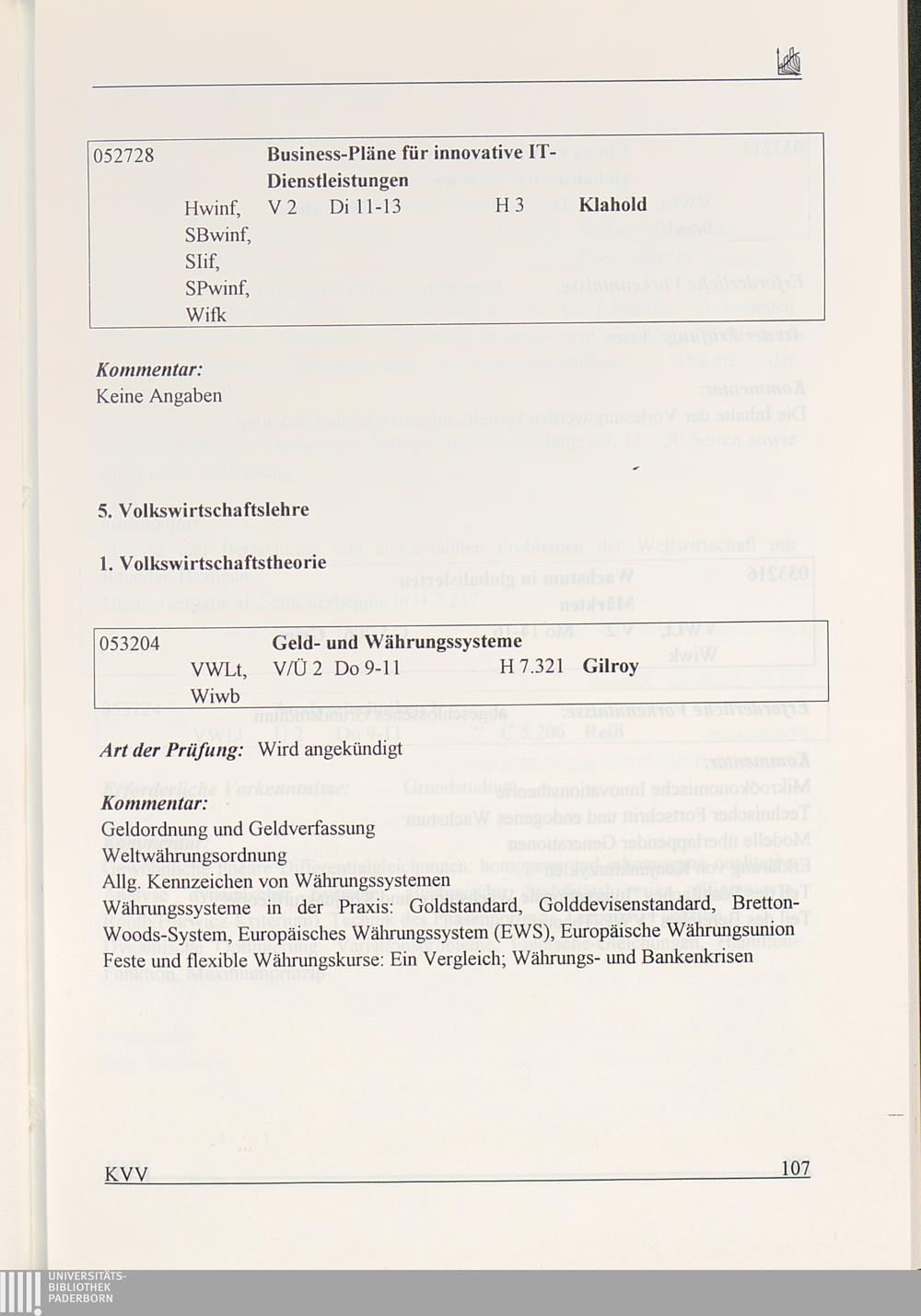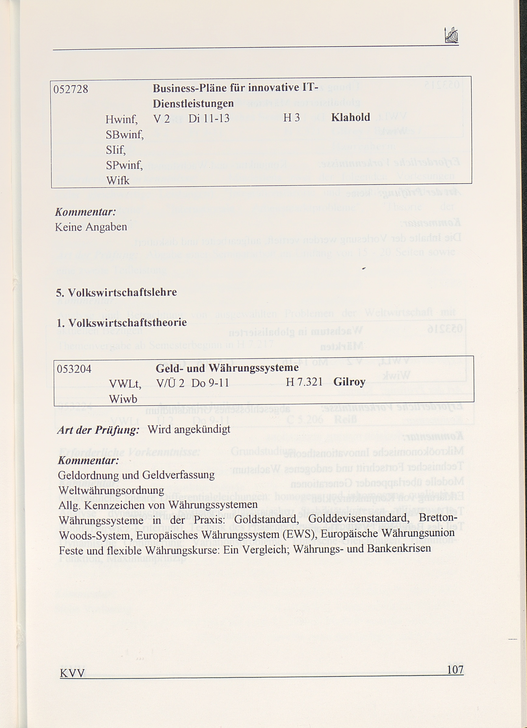 Kommentiertes Vorlesungsverzeichnis