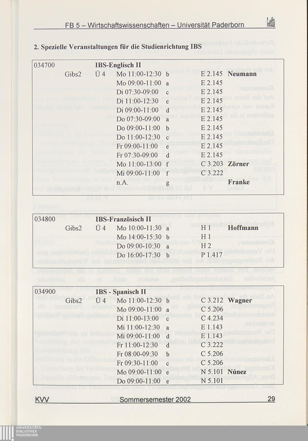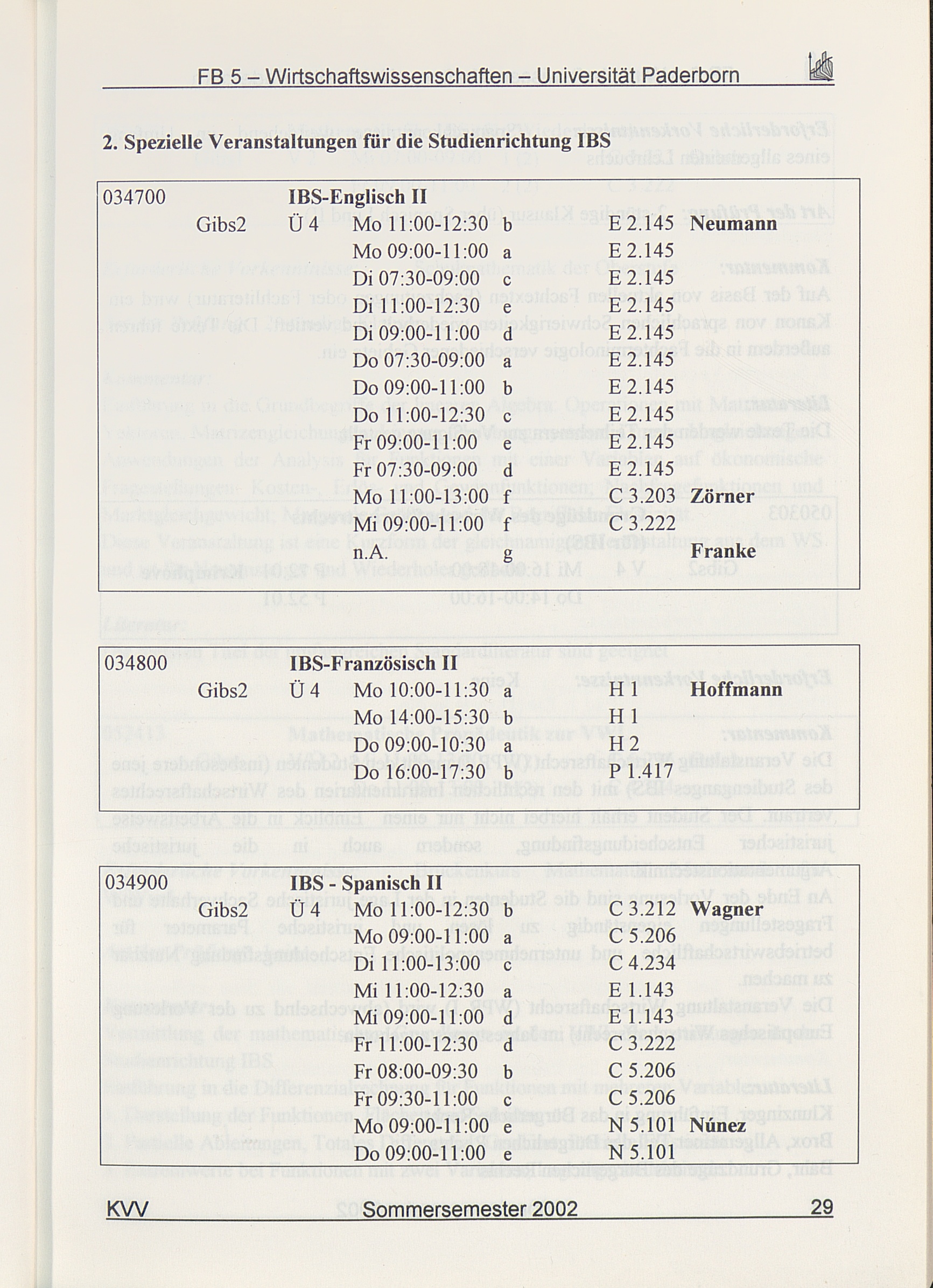 2. Spezielle Veranstaltungen für die Studienrichtung IBS