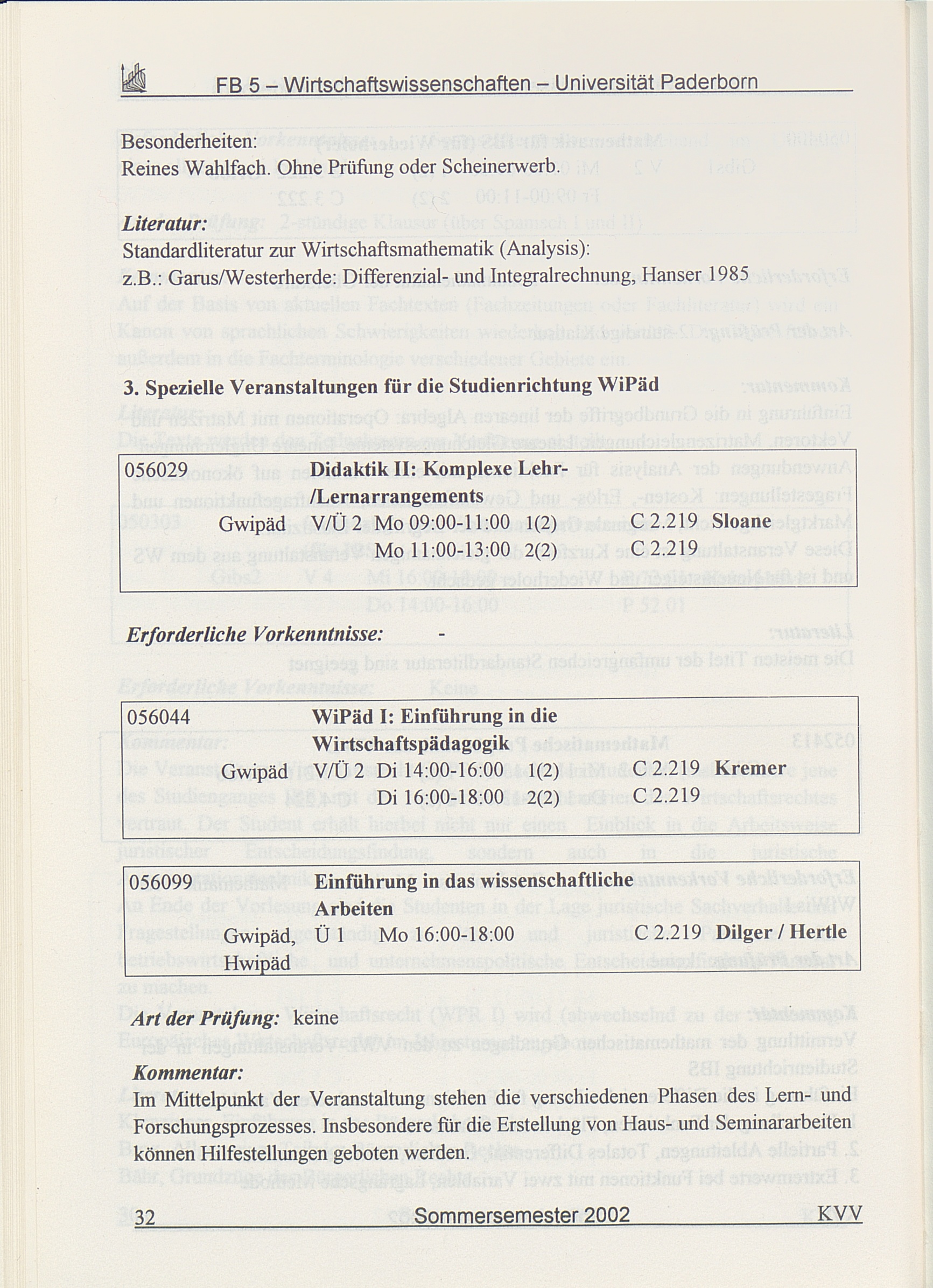3. Spezielle Veranstaltungen für die Studienrichtung WiPäd