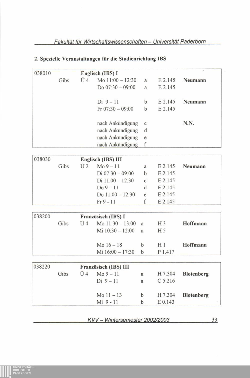 (2002-2003) Wintersemester 2002/2003