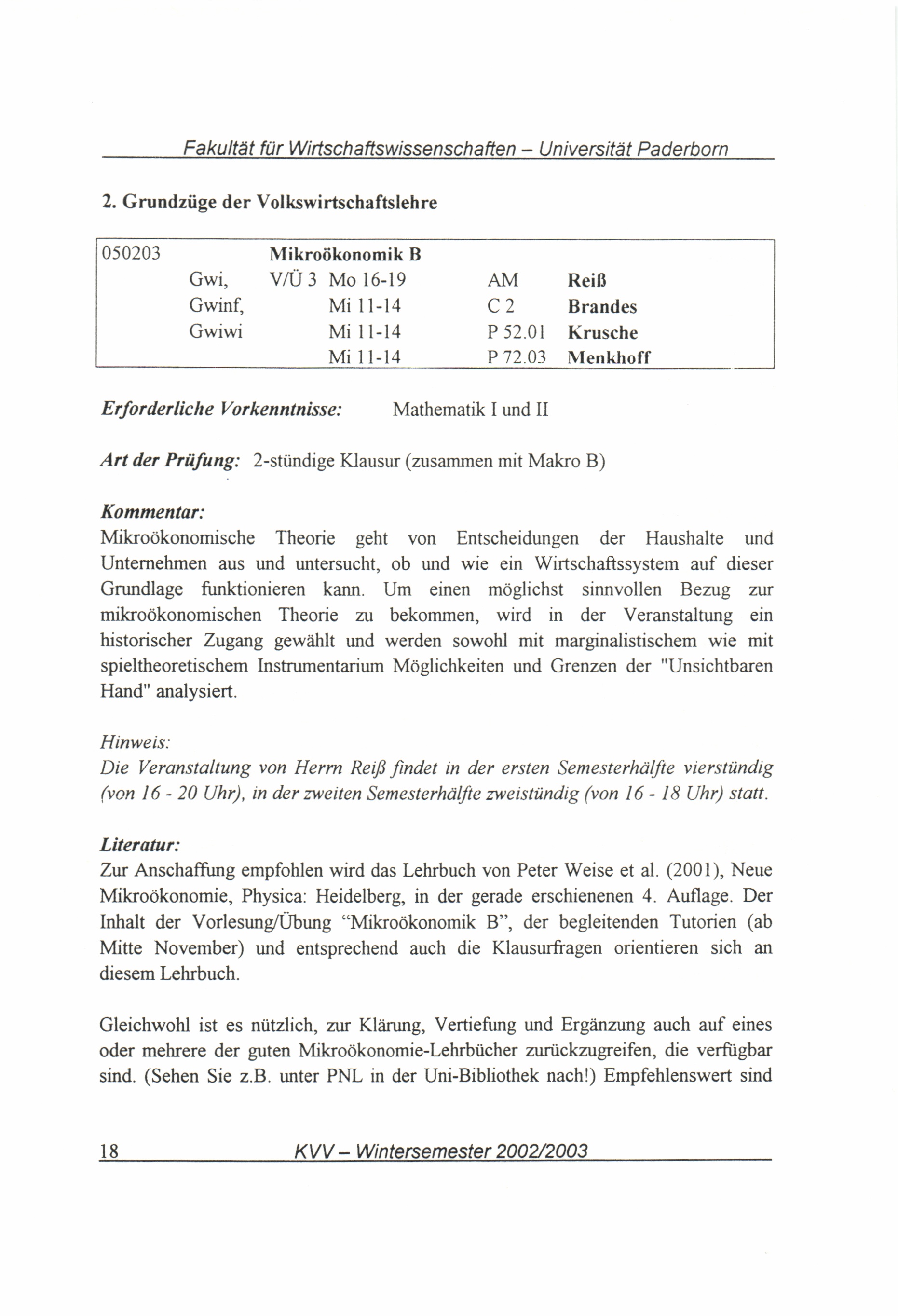 (2002-2003) Wintersemester 2002/2003