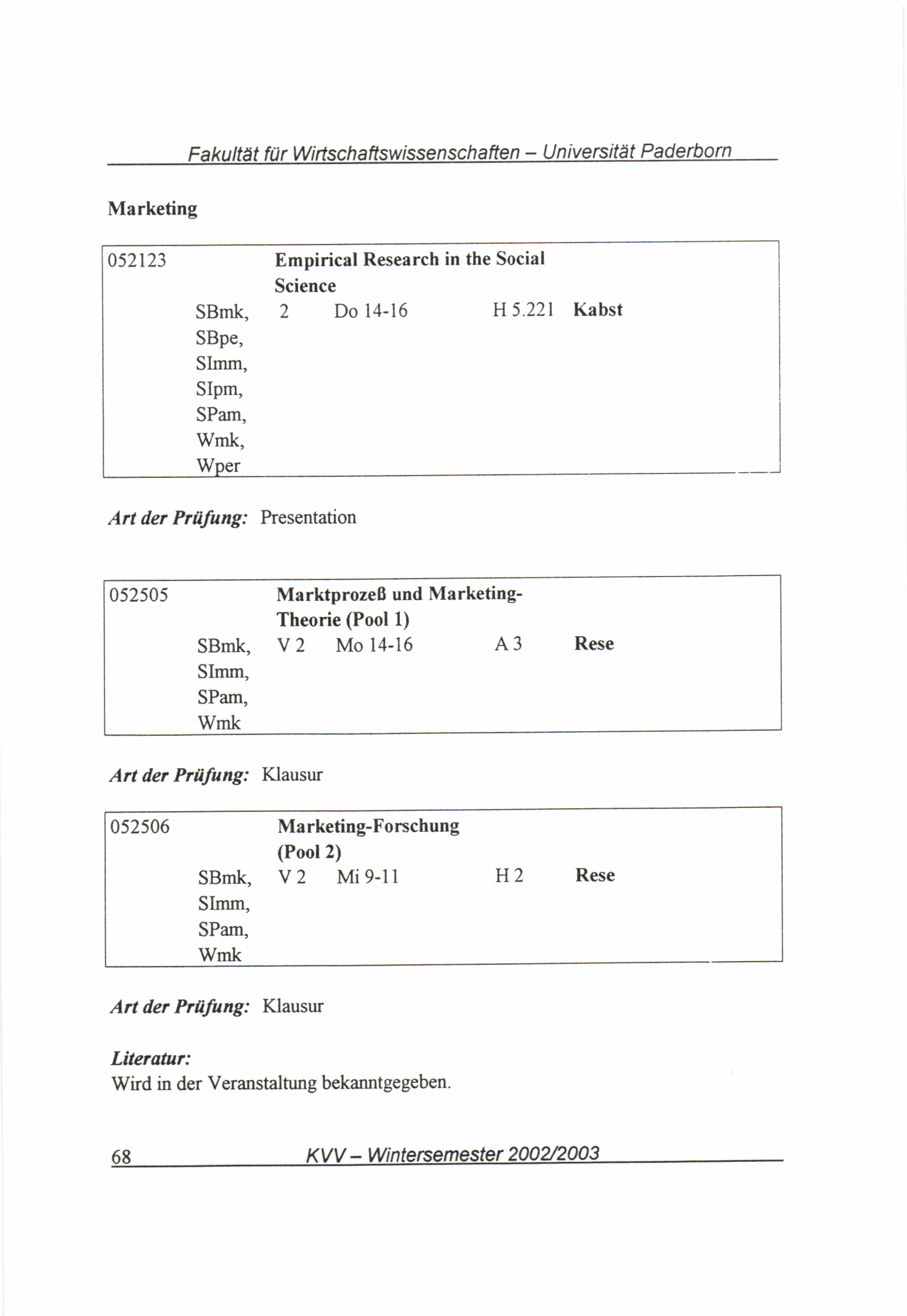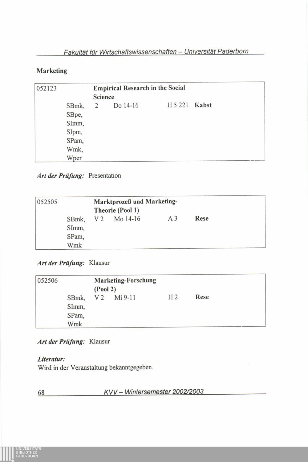 (2002-2003) Wintersemester 2002/2003