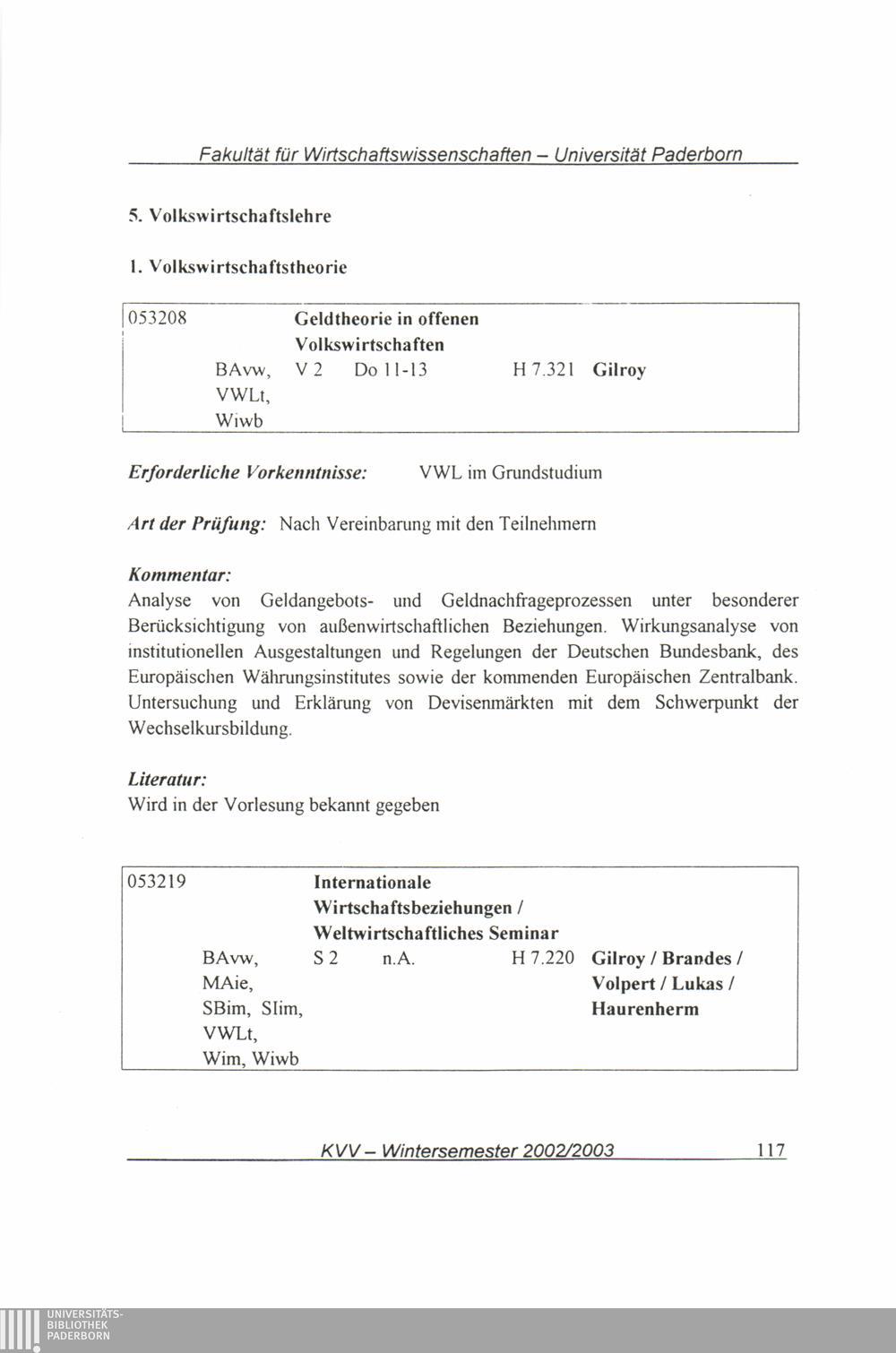 (2002-2003) Wintersemester 2002/2003