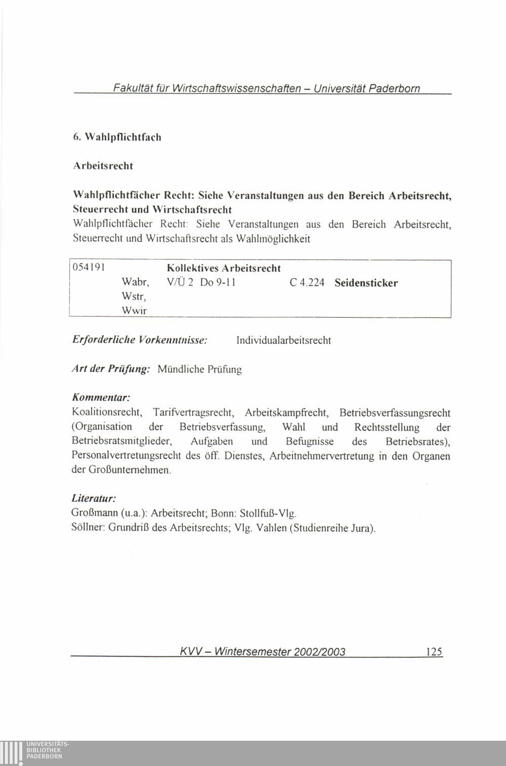 (2002-2003) Wintersemester 2002/2003