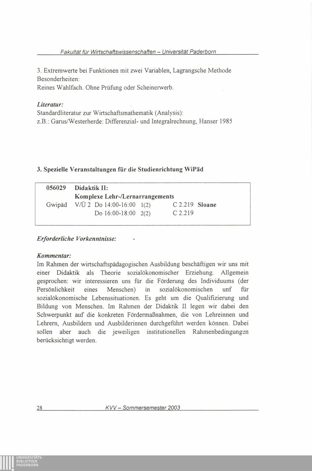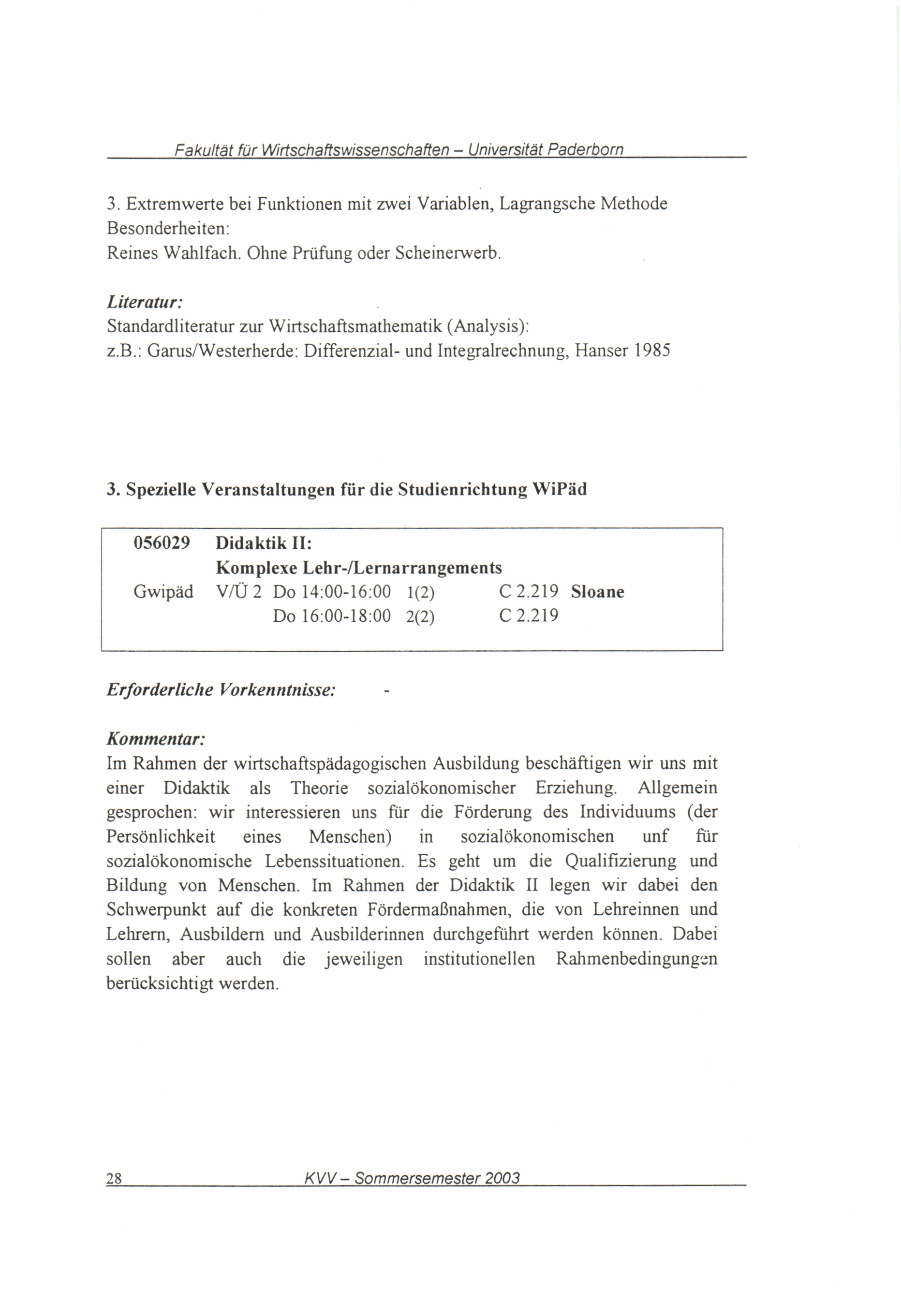 3. Spezielle Veranstaltungen für die Studienrichtung WiPäd