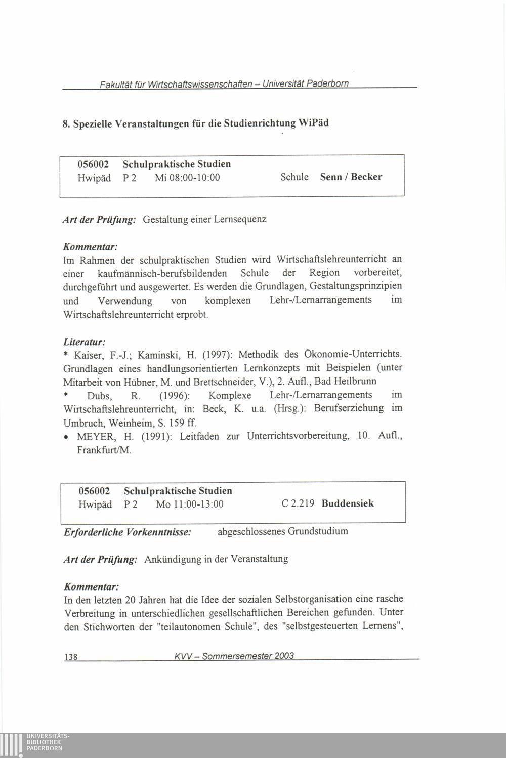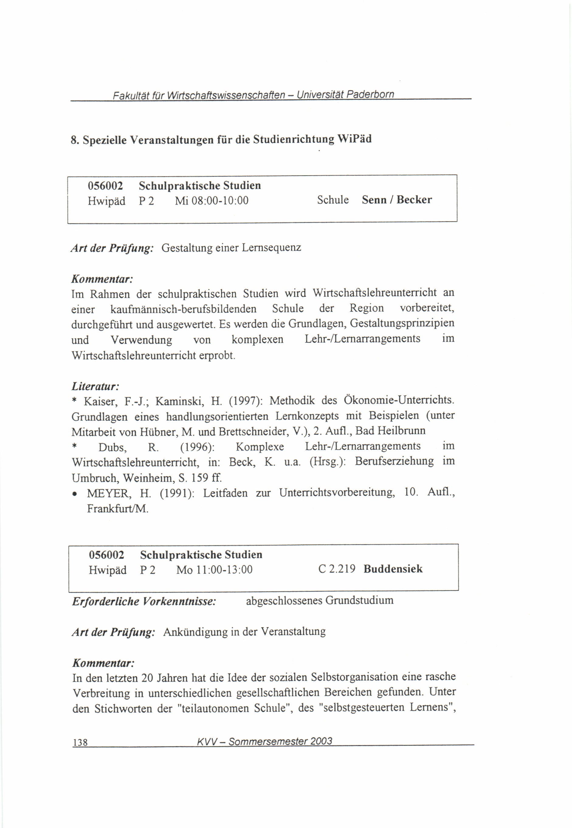8. Spezielle Veranstaltungen für die Studienrichtung WiPäd