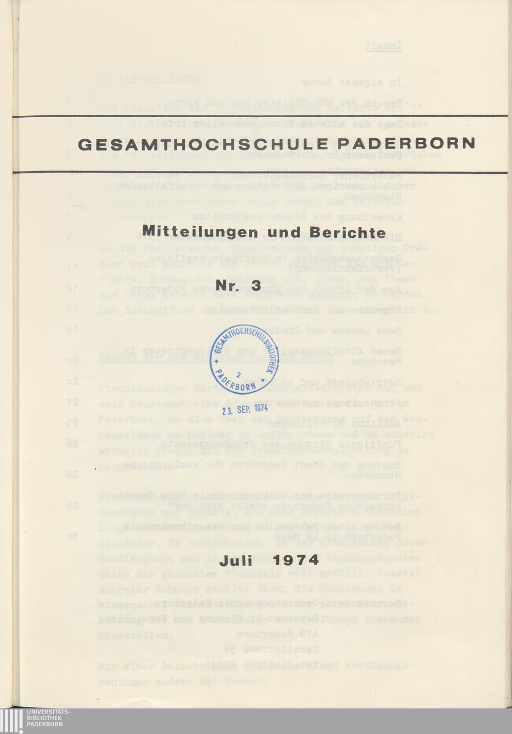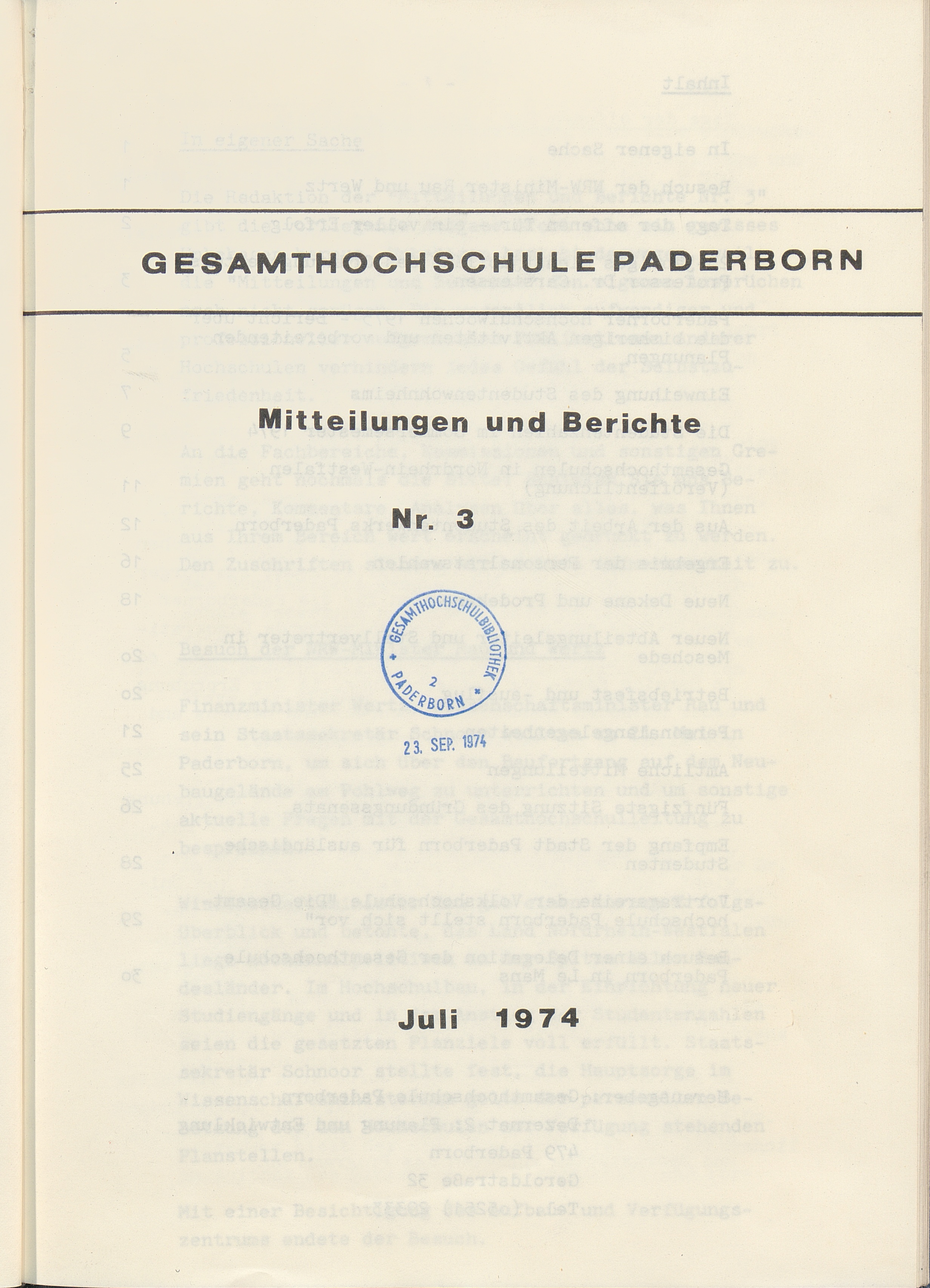 Paderborner Hochschulwochen 1975 - Bericht über die bisherigen Aktivitäten und vorbereitenden Planungen