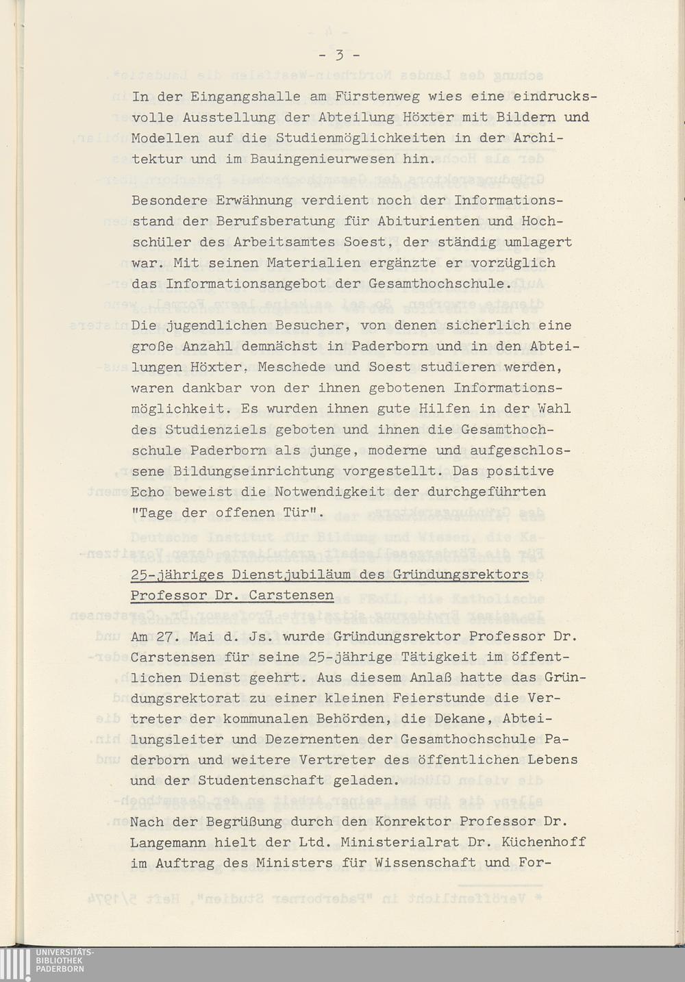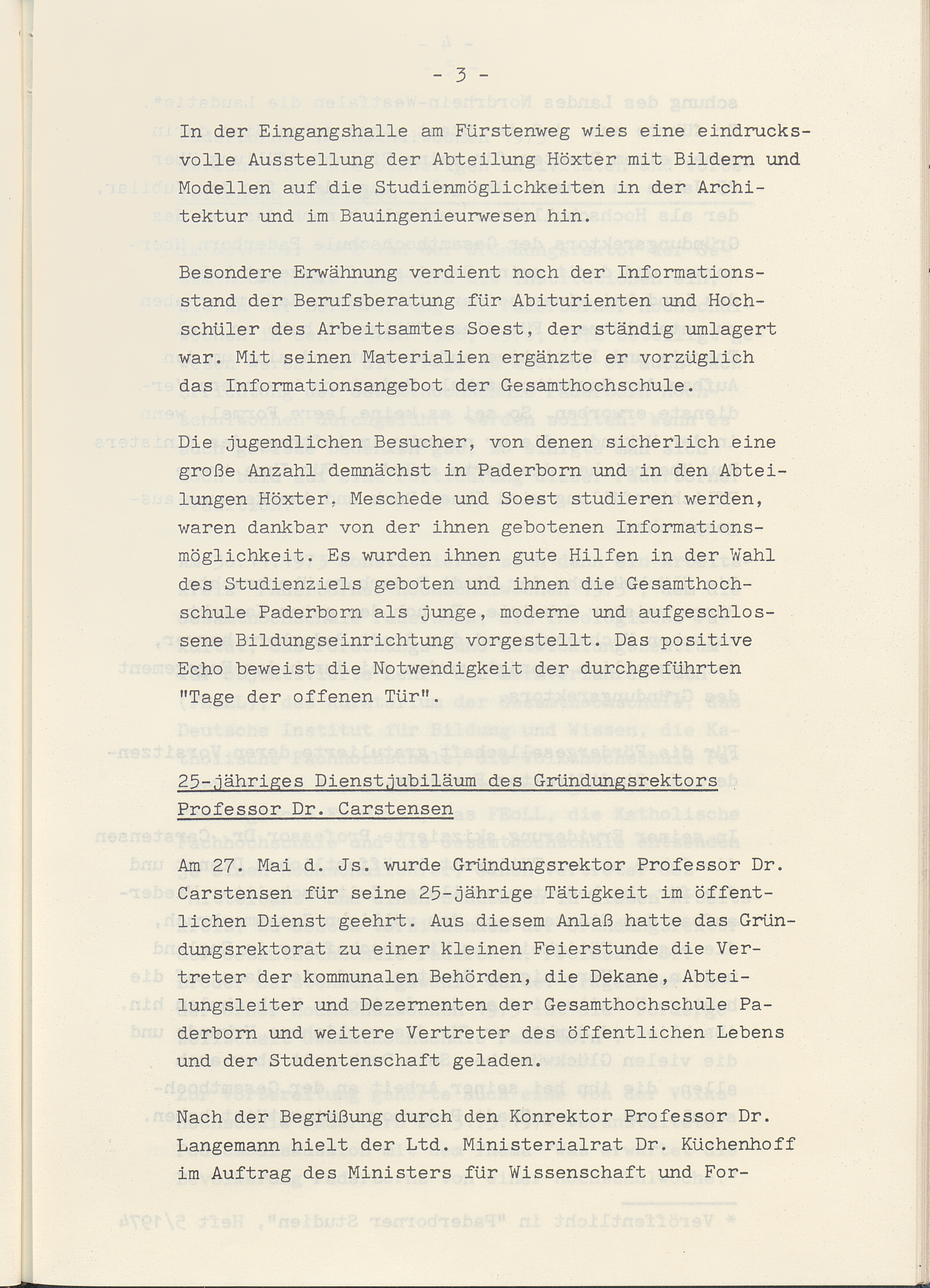 Paderborner Hochschulwochen 1975 - Bericht über die bisherigen Aktivitäten und vorbereitenden Planungen