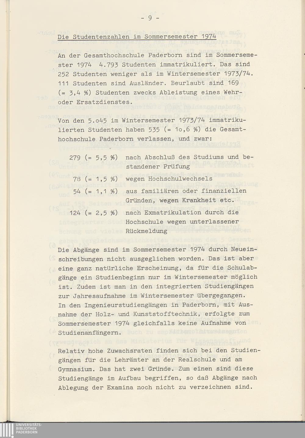 Paderborner Hochschulwochen 1975 - Bericht über die bisherigen Aktivitäten und vorbereitenden Planungen
