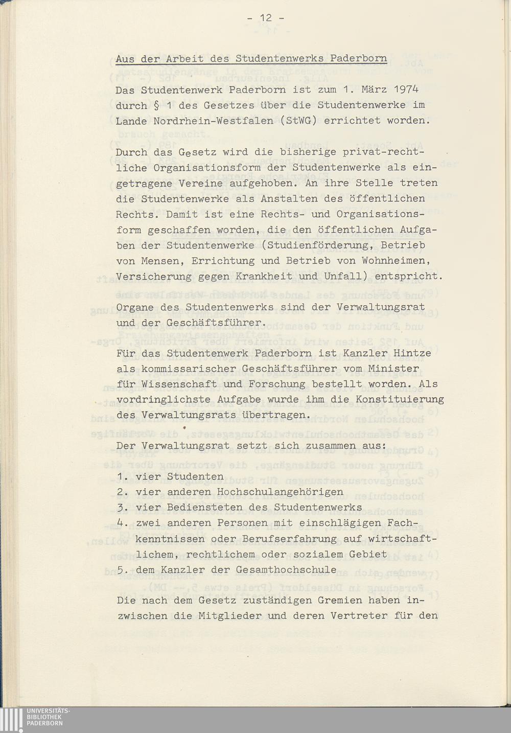Aus der Arbeit des Studentenwerks Paderborn