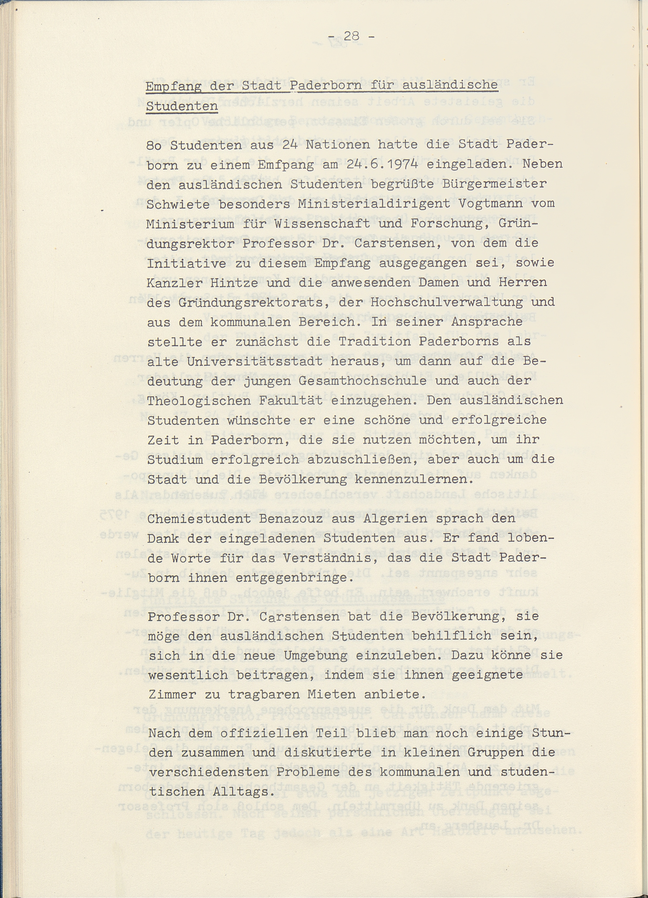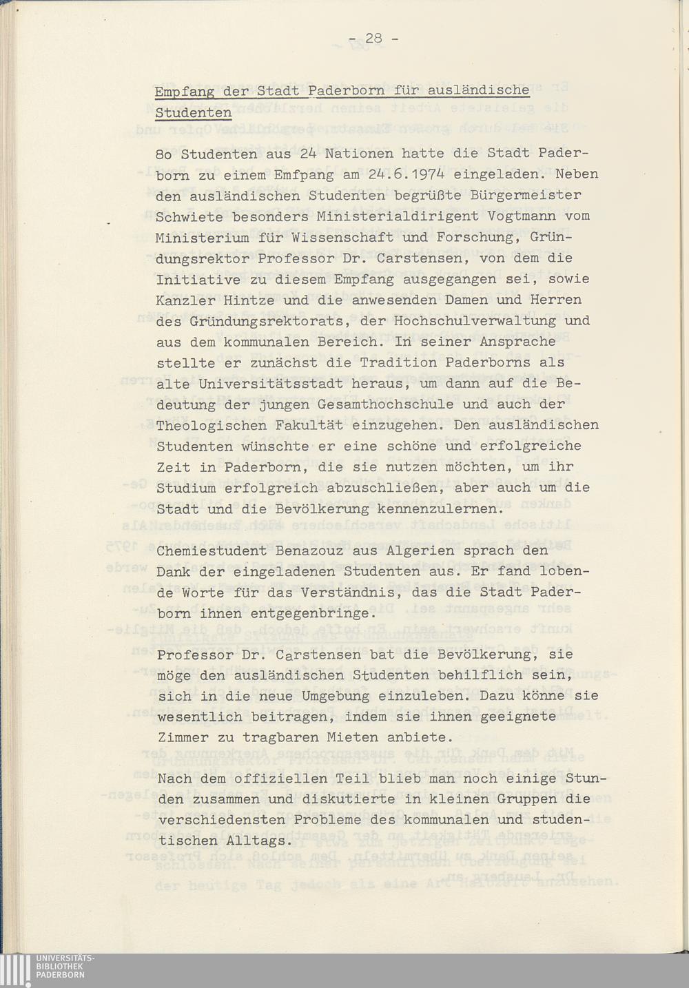 Paderborner Hochschulwochen 1975 - Bericht über die bisherigen Aktivitäten und vorbereitenden Planungen