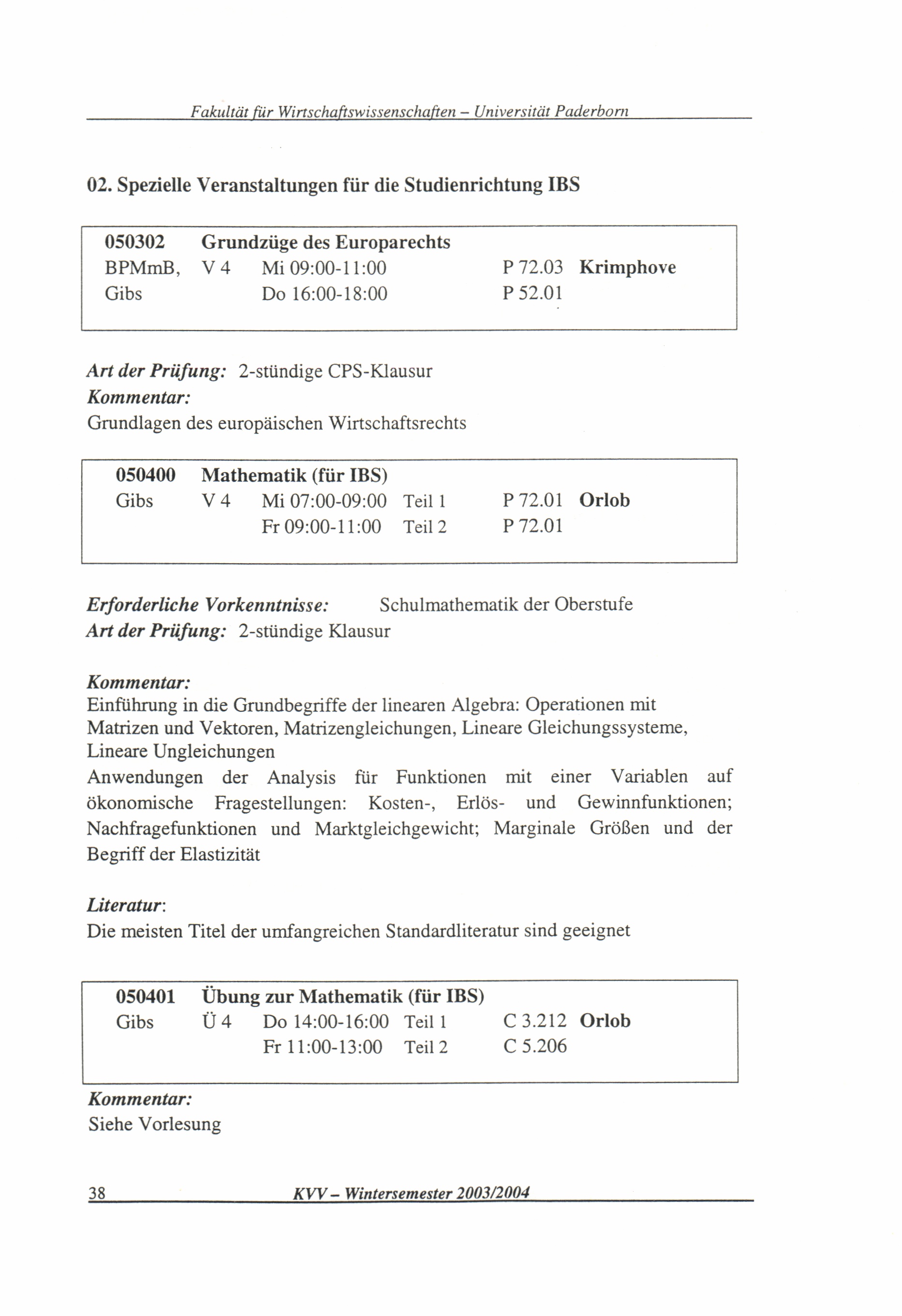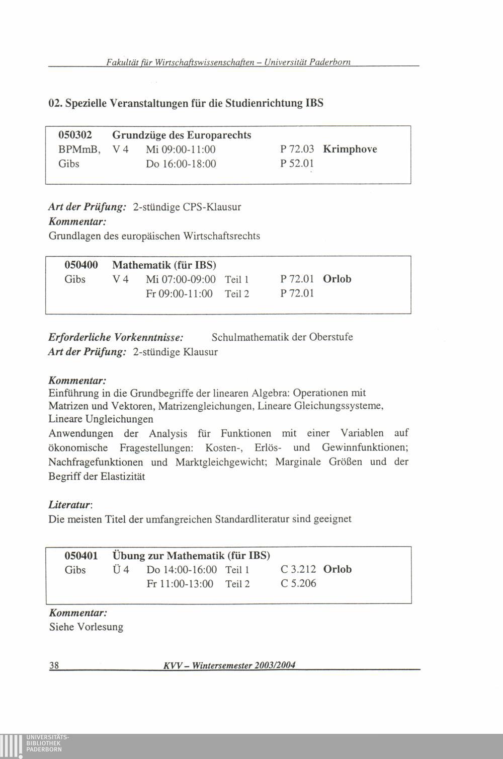 (2003-2004) Wintersemester 2003/04