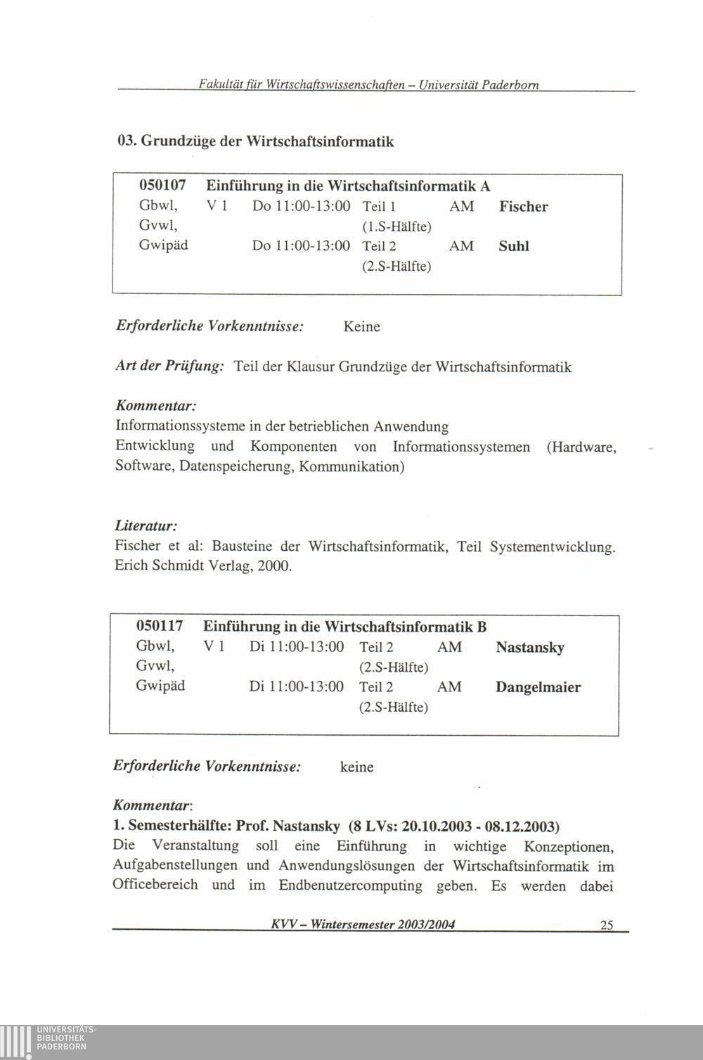 (2003-2004) Wintersemester 2003/04