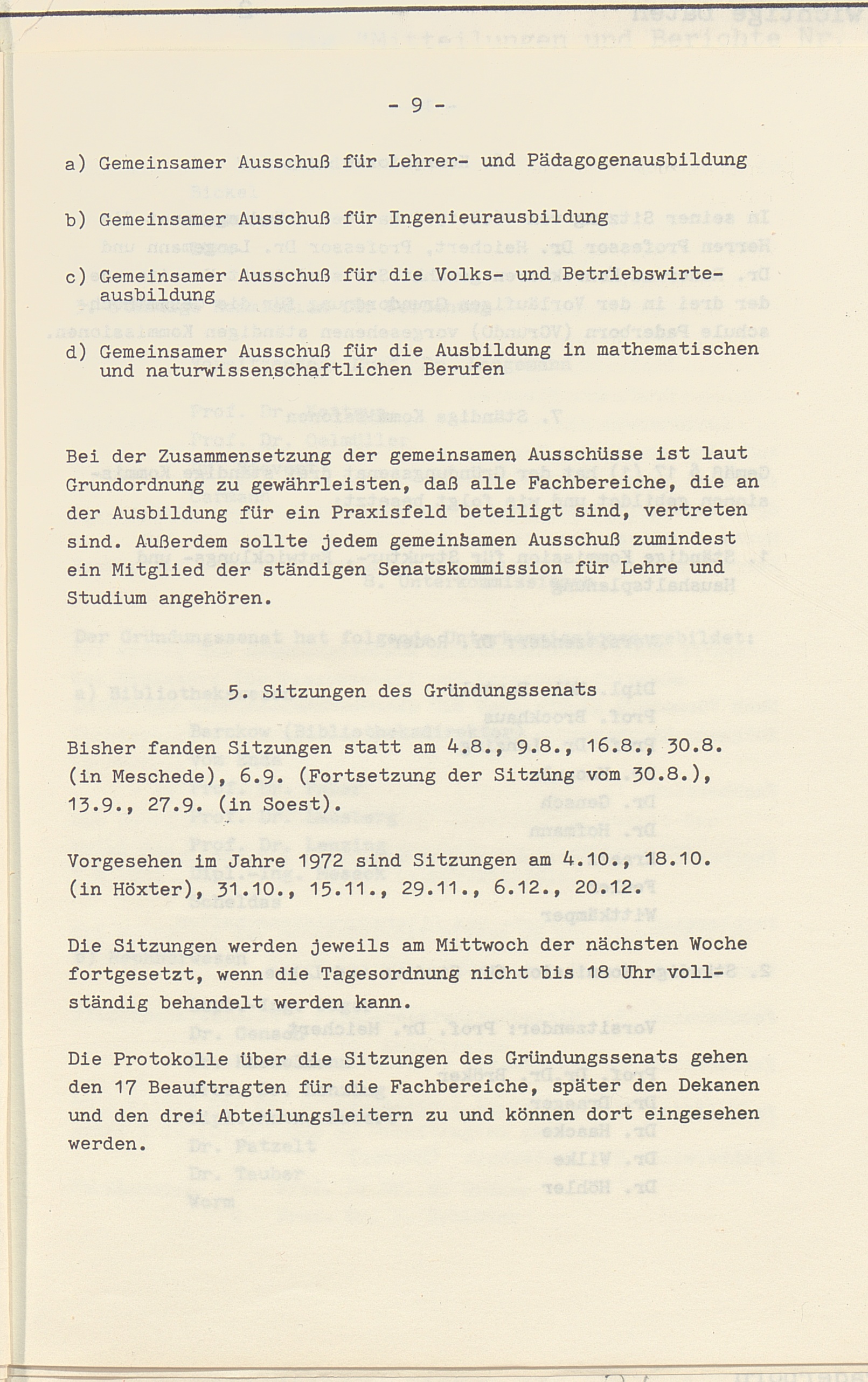 5. Sitzungen des Gründungssenats