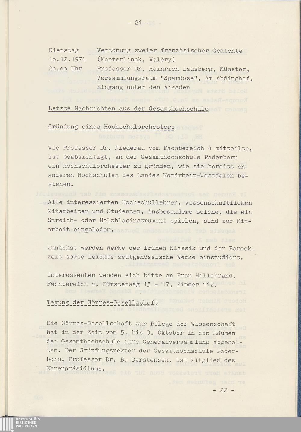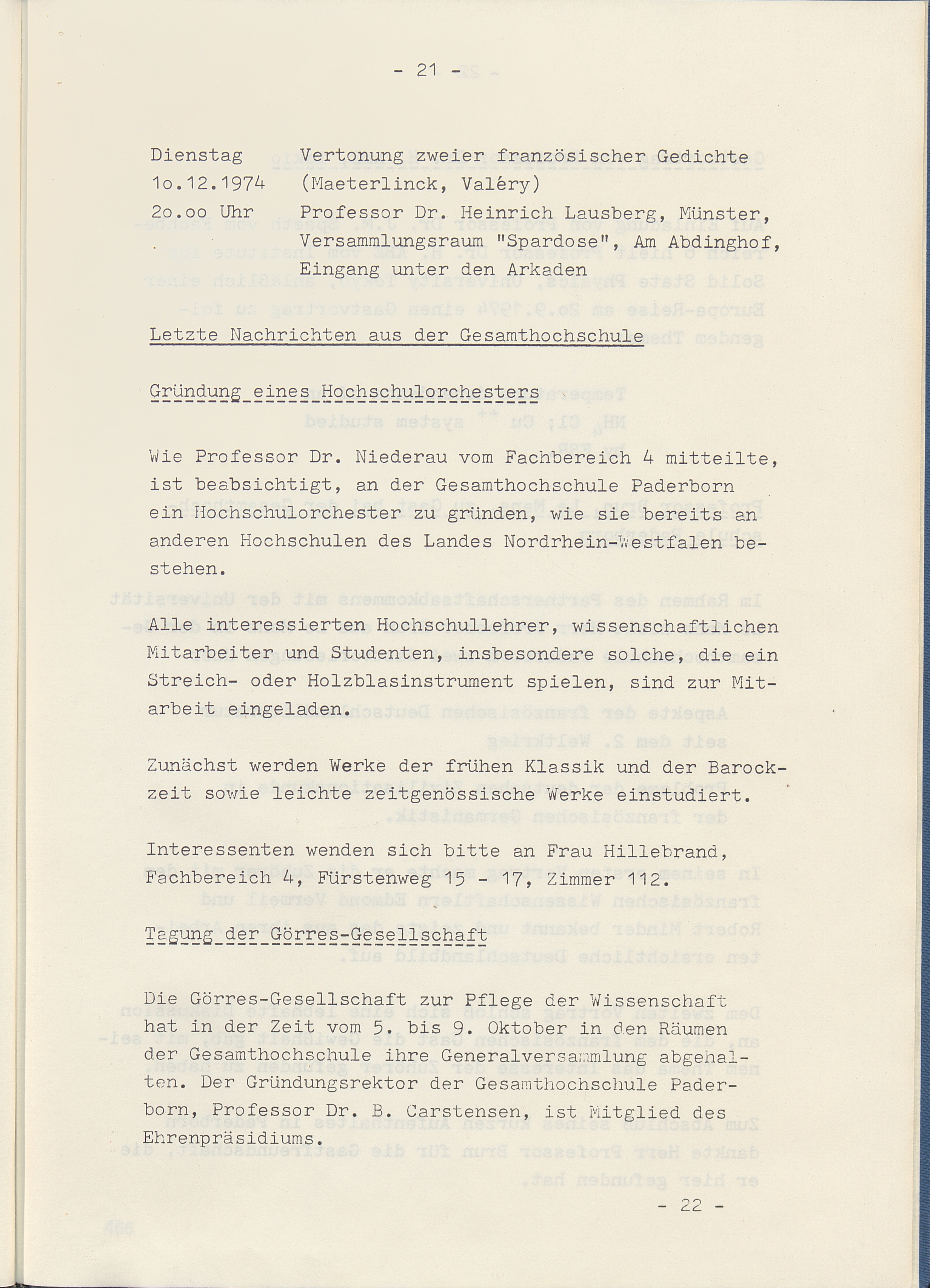 Vortragsreihe der Volkshochschule "Die Gesamthochschule stellt sich vor"