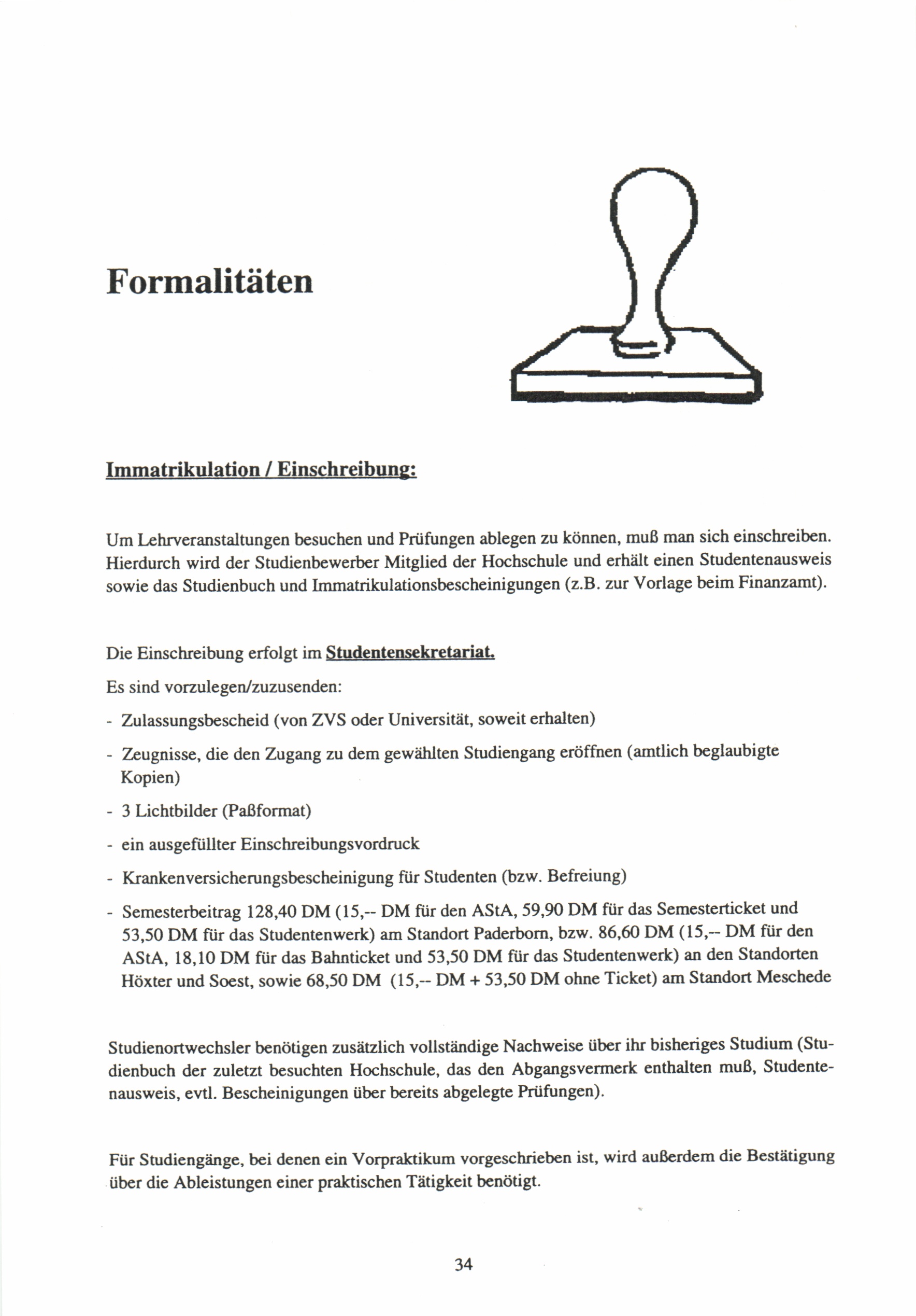 Hinweise der Hochschulverwaltung
