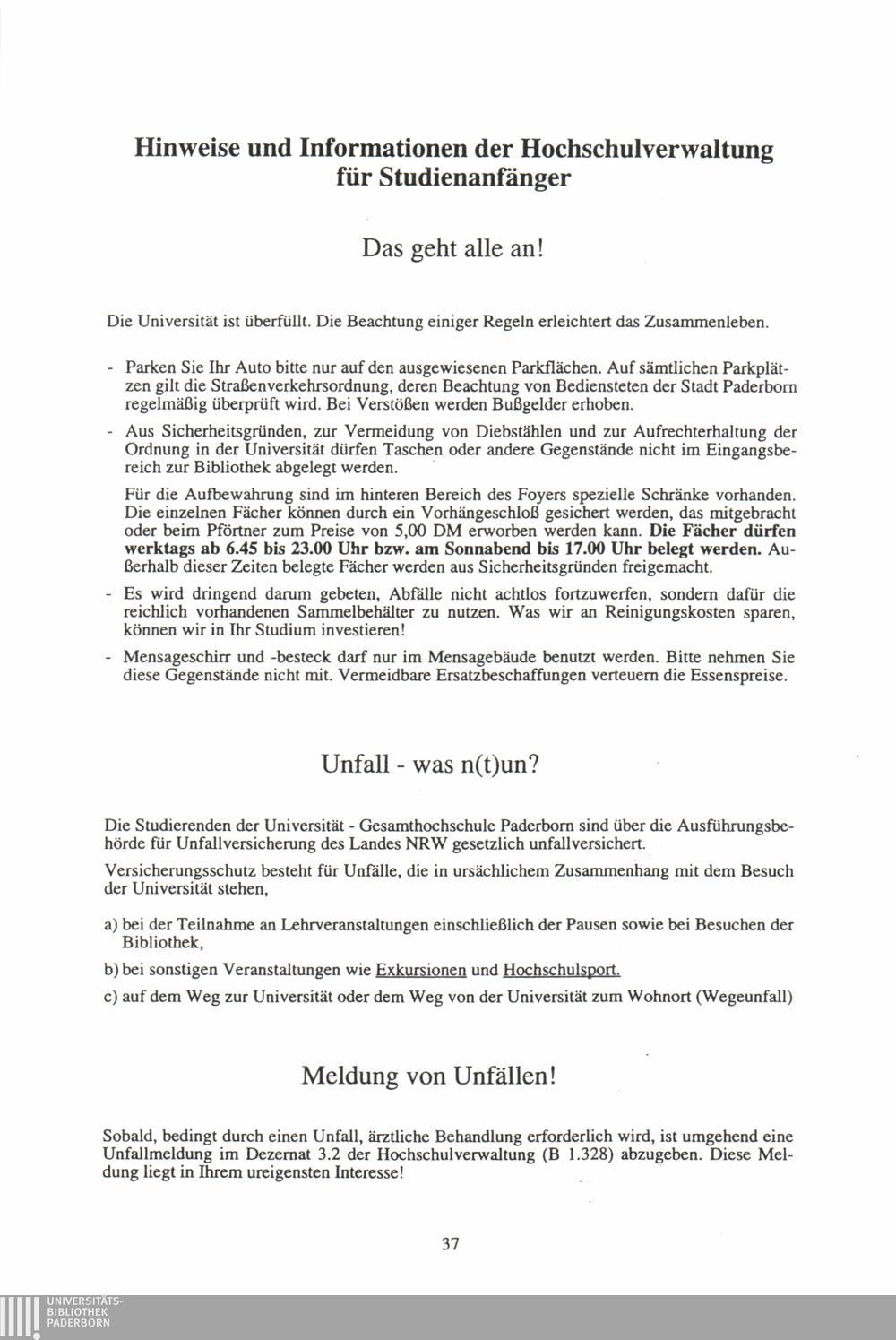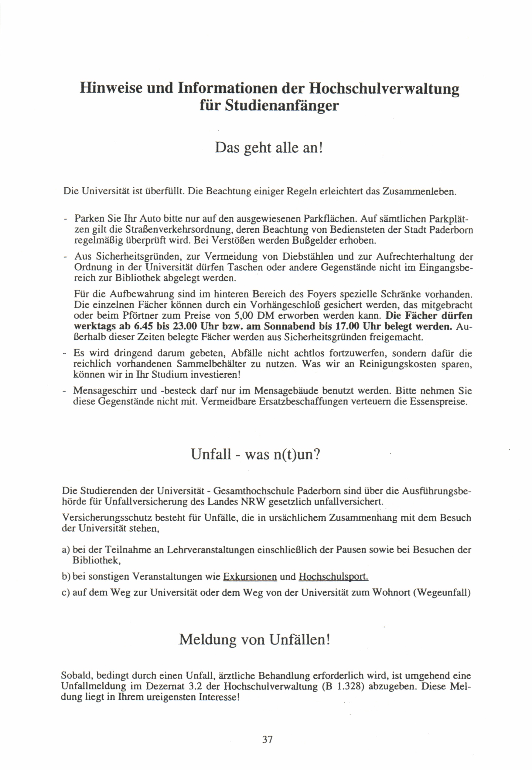Hinweise der Hochschulverwaltung
