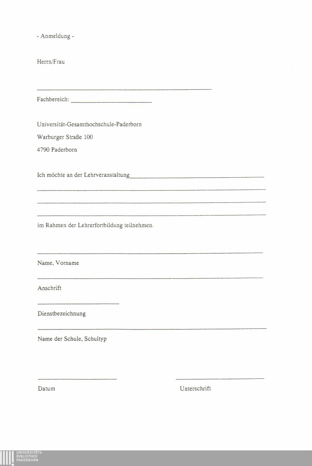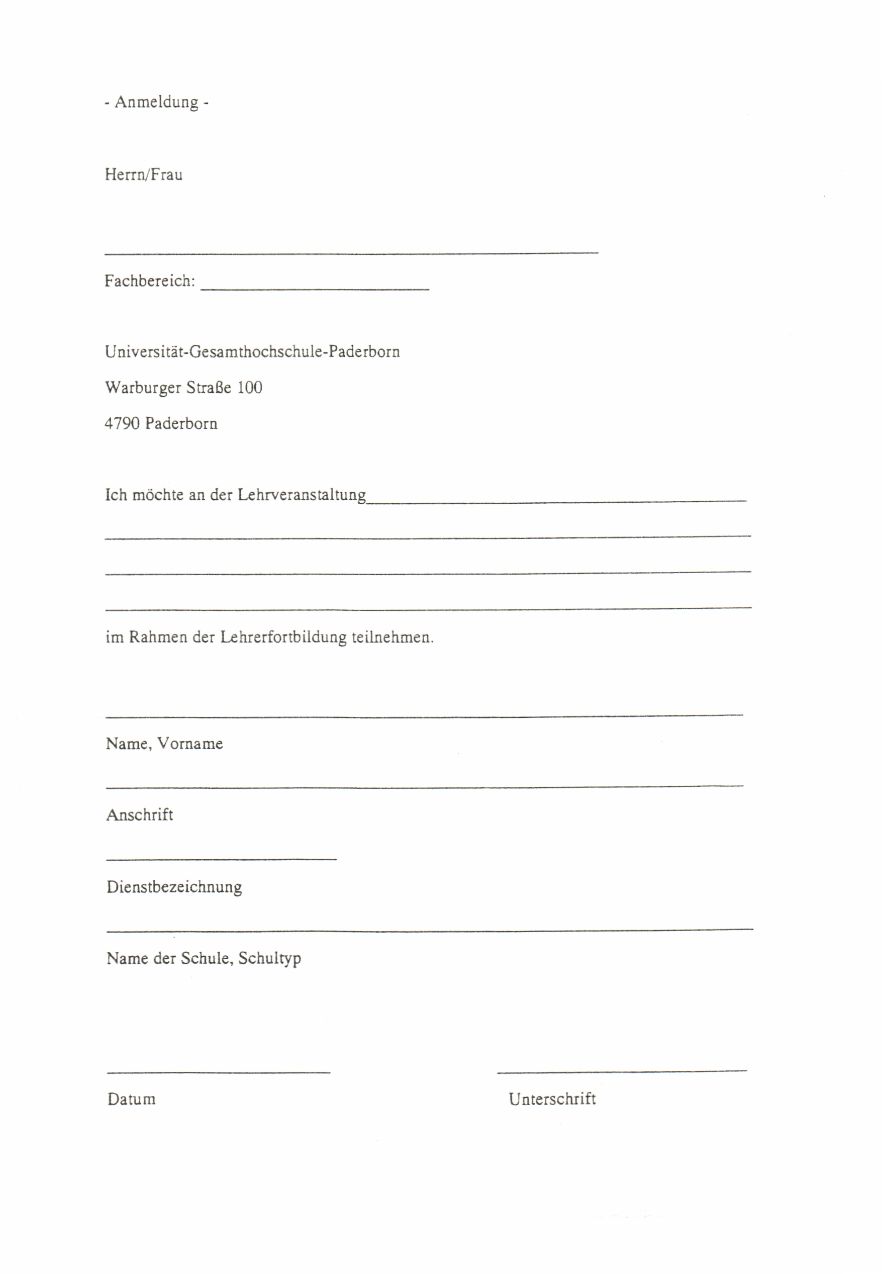 Anlage: Anmeldeformular