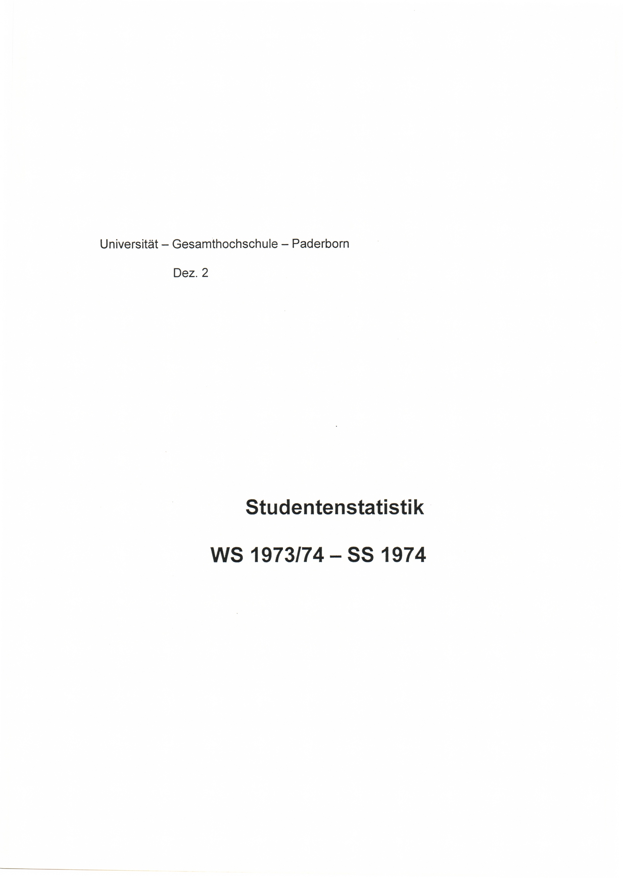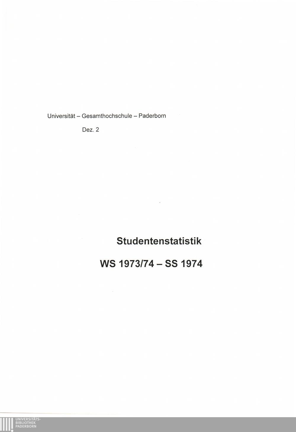(1973-1974) WS 1973/74 - SS 1974