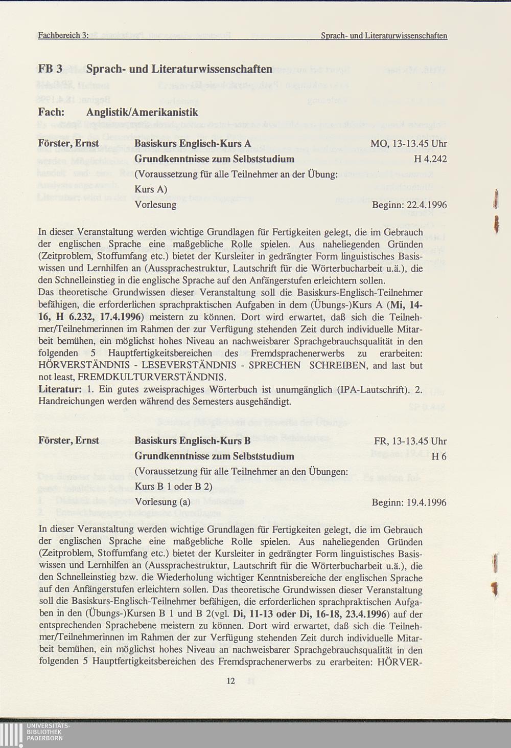(1996) Sommersemester 1996