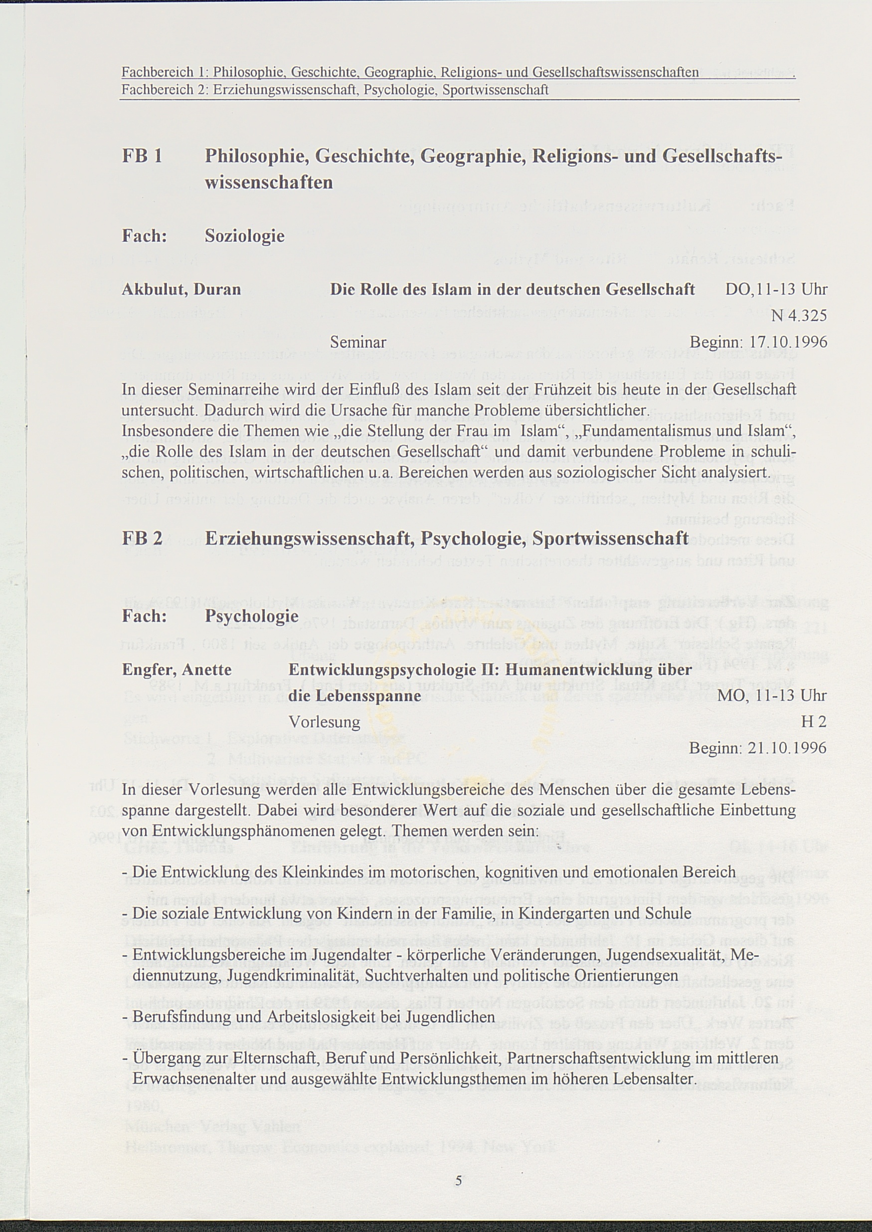 (1995-1996) Wintersemester 1995/96