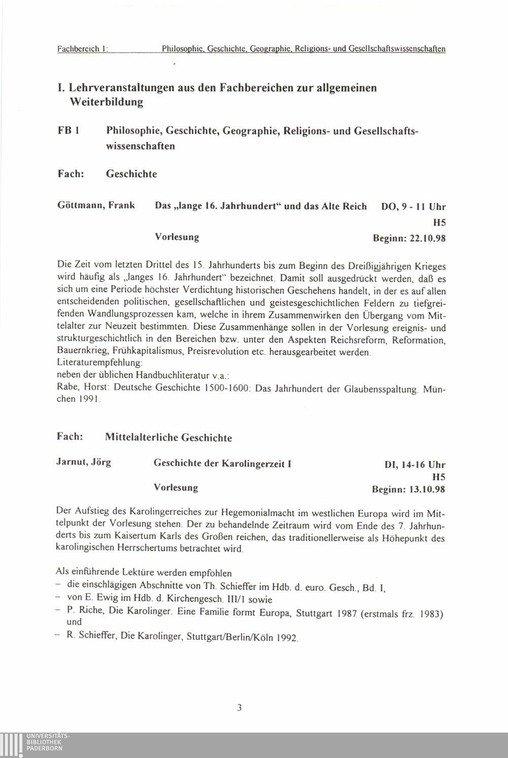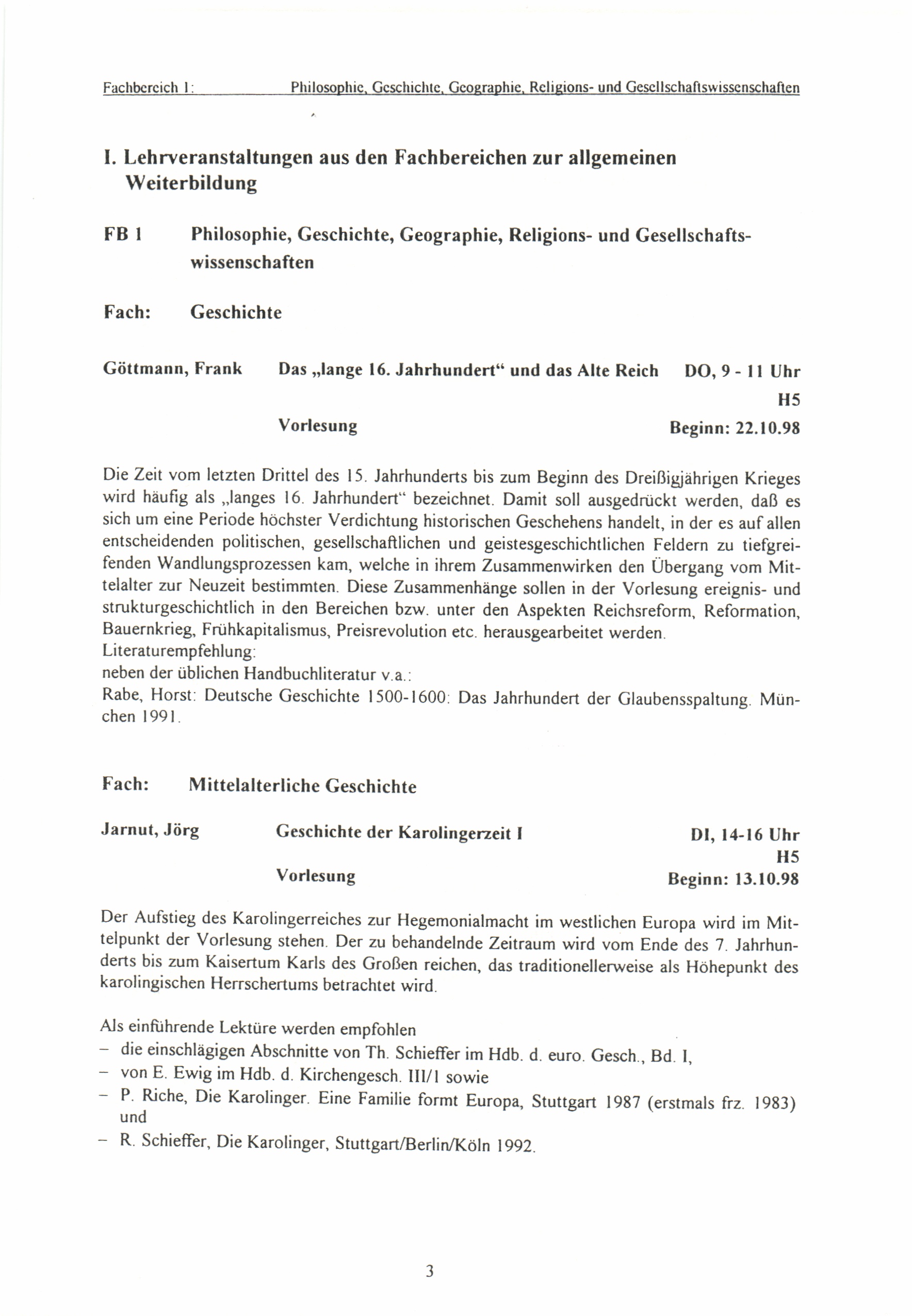 I. Lehrveranstaltungen aus den Fachbereichen zur allgemeinen Weiterbildung