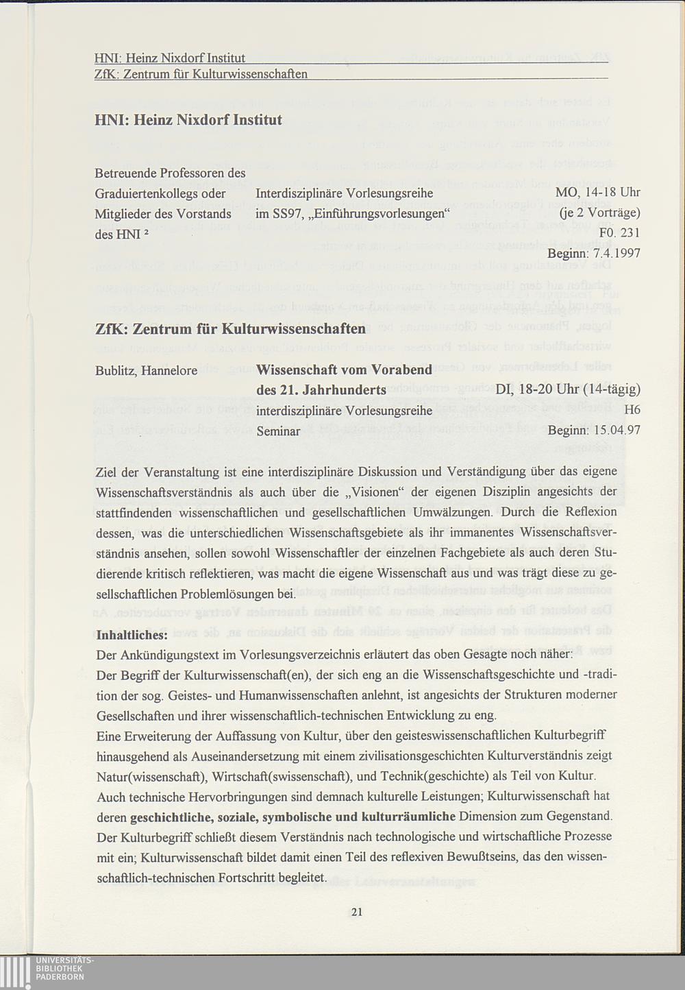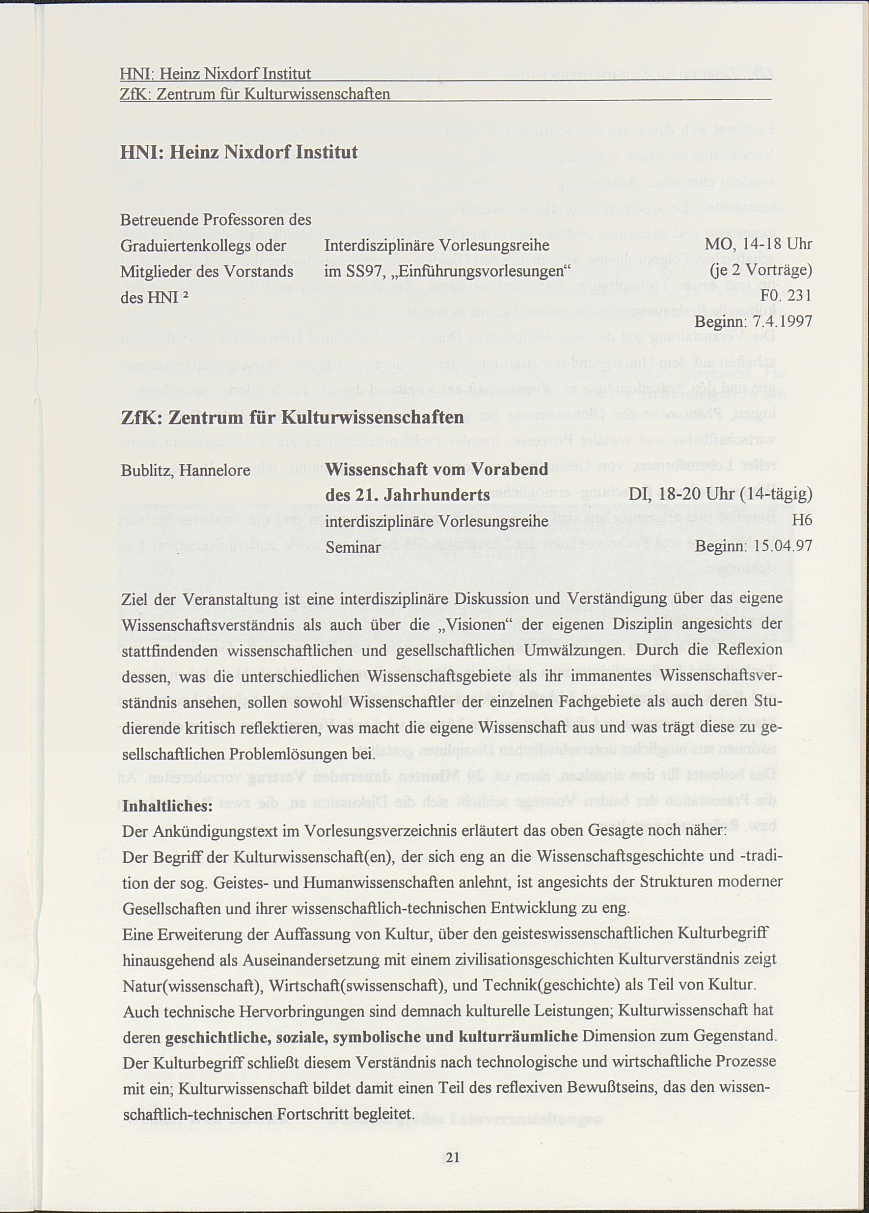 I. Lehrveranstaltungen aus den Fachbereichen zur allgemeinen Weiterbildung