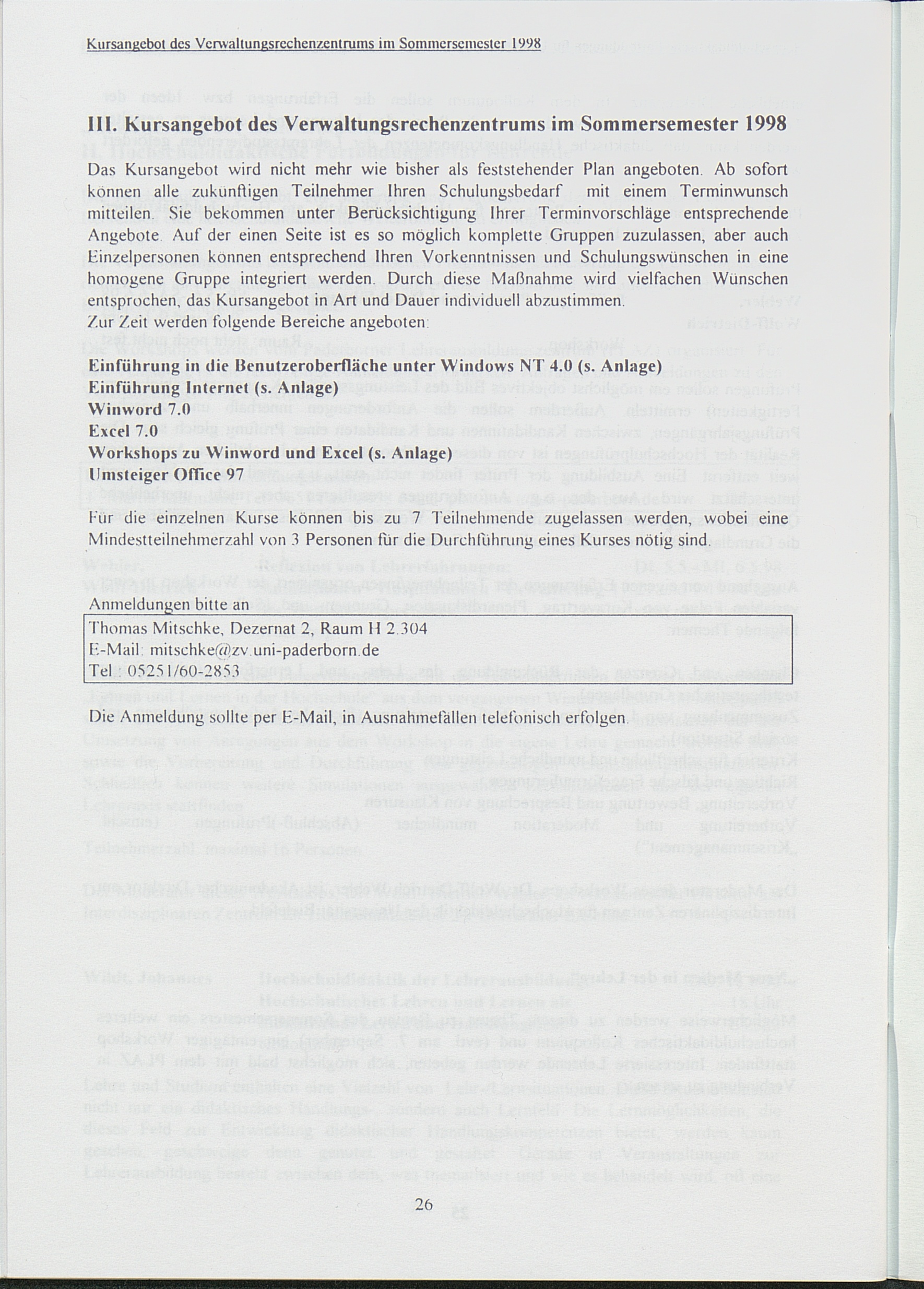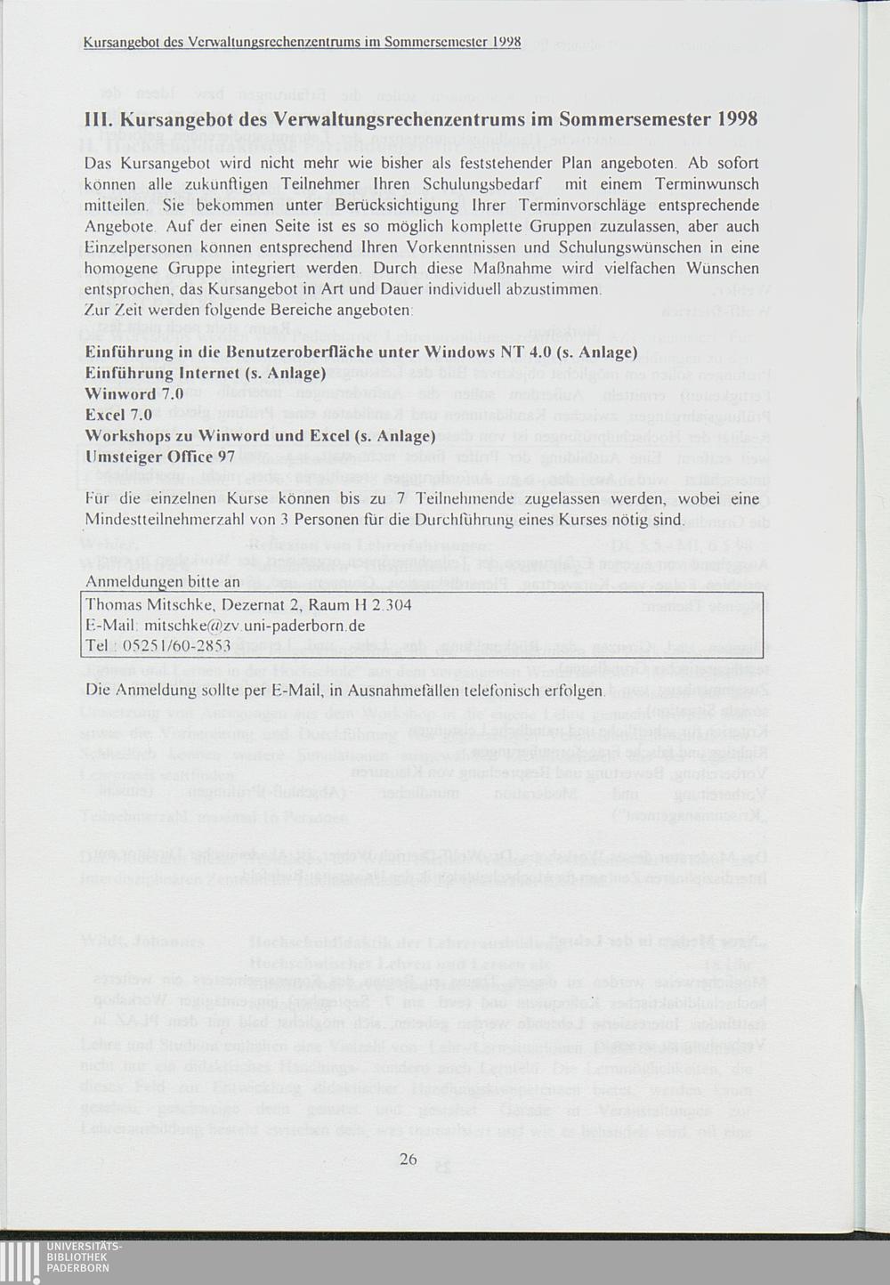 III. Kursangebot des Verwaltungsrechenzentrums im Sommersemester 1998