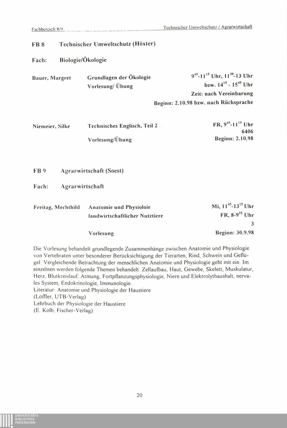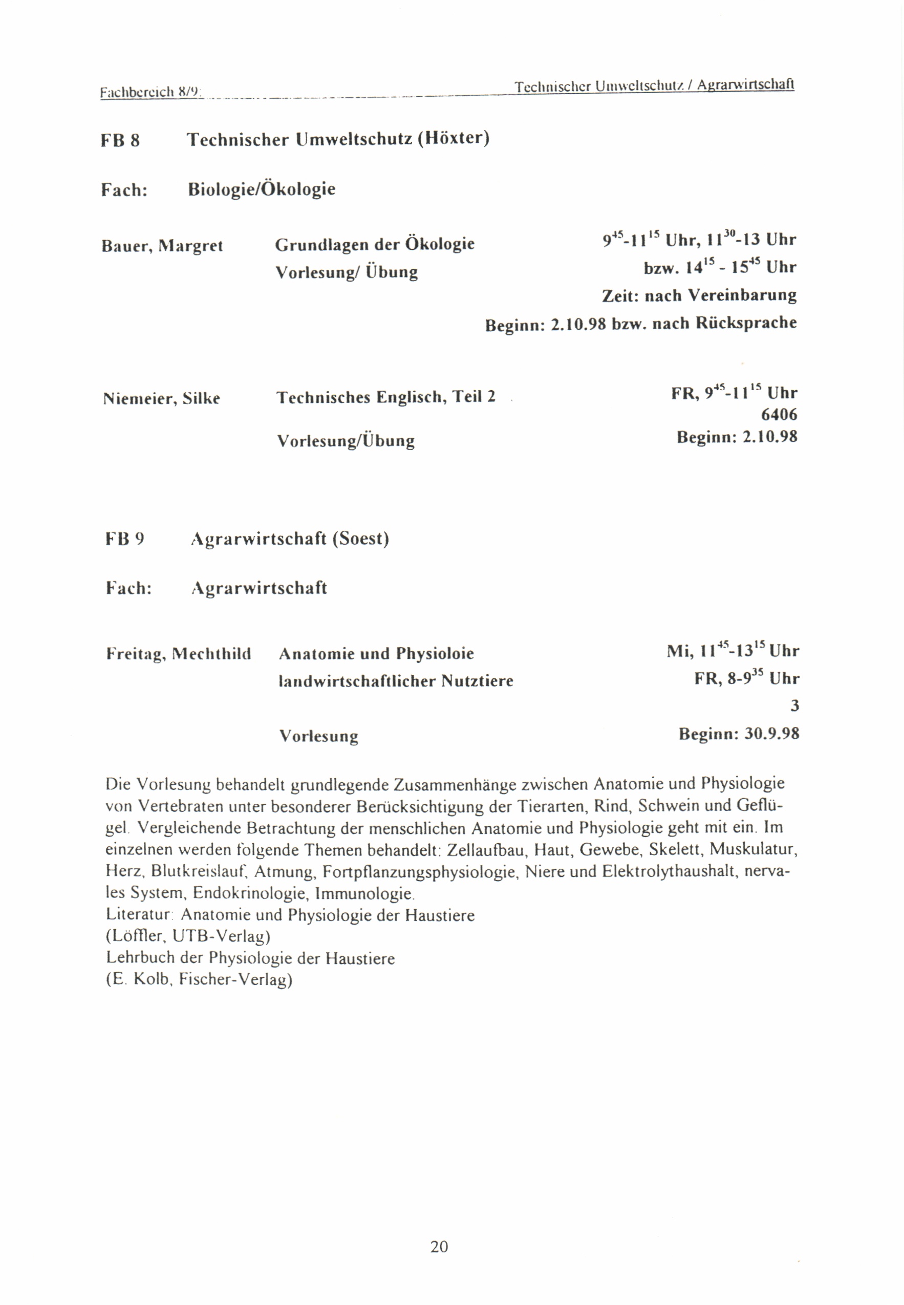 I. Lehrveranstaltungen aus den Fachbereichen zur allgemeinen Weiterbildung