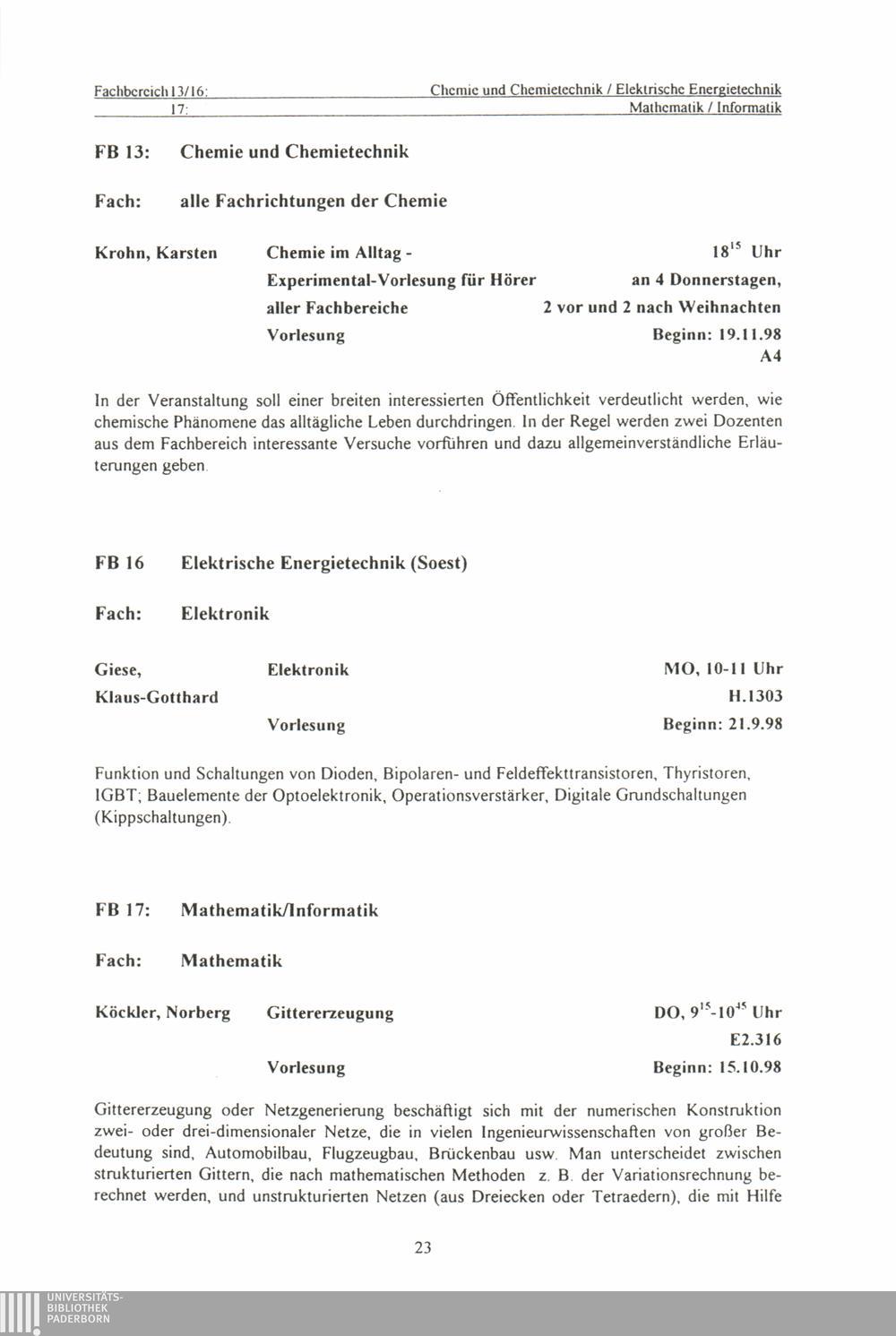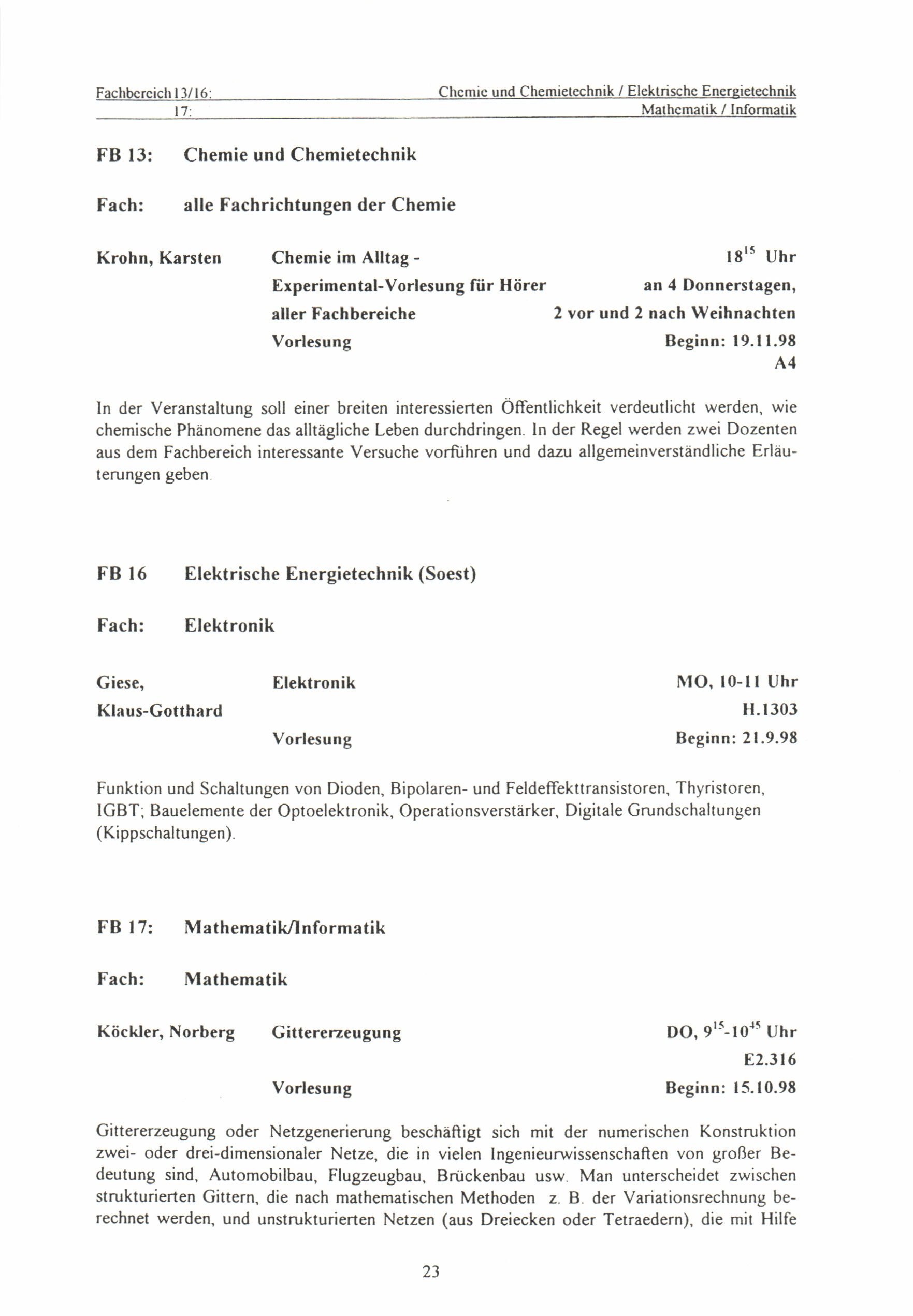 (1998-1999) Wintersemester 1998/99