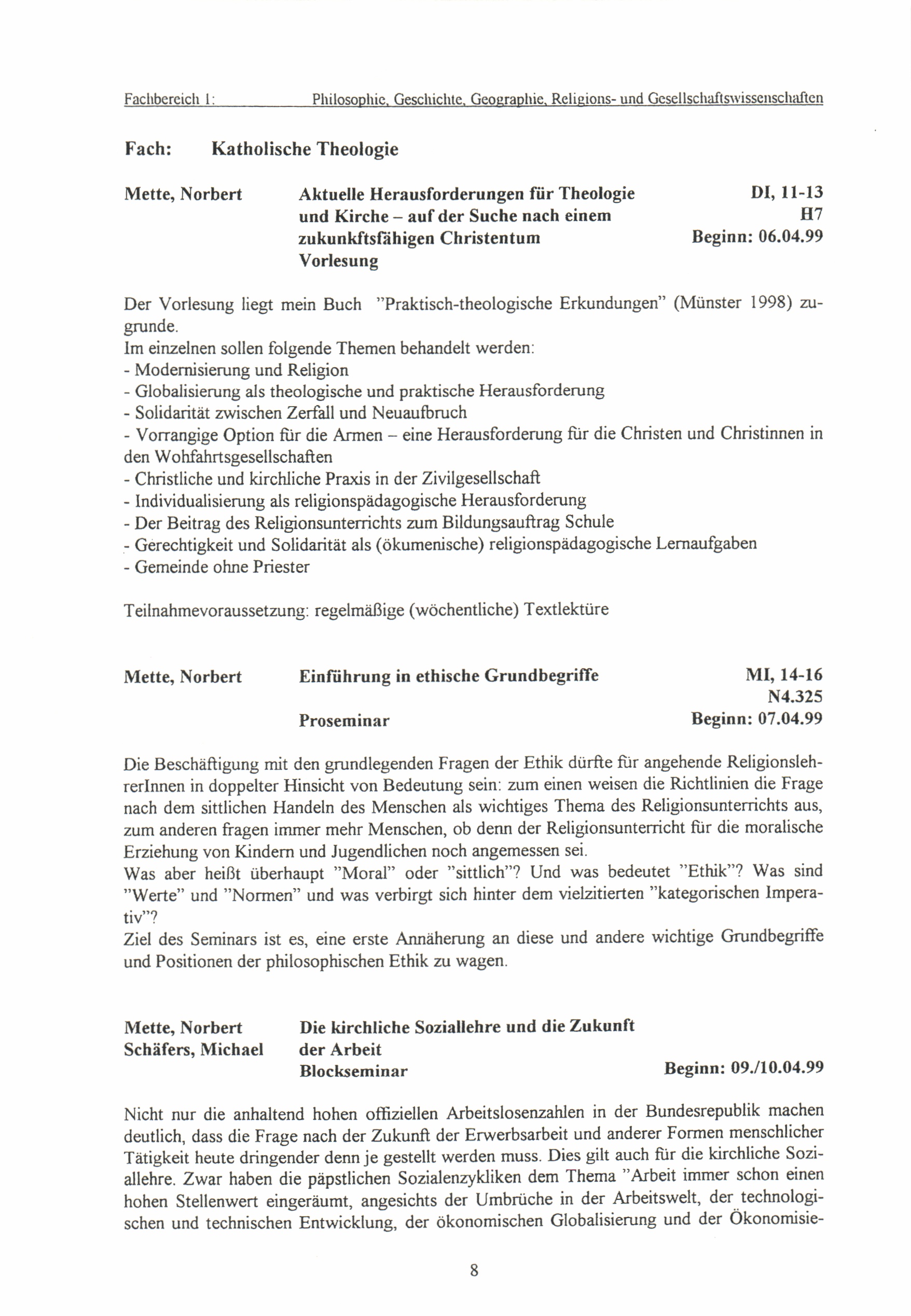 I. Lehrveranstaltungen aus den Fachbereichen zur allgemeinen Weiterbildung