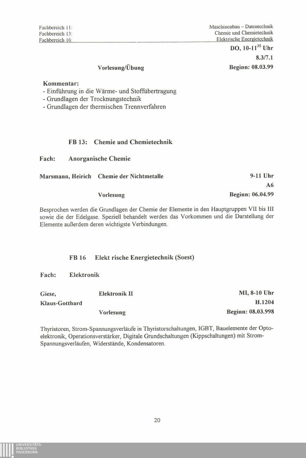 1999 Sommersemester 1999