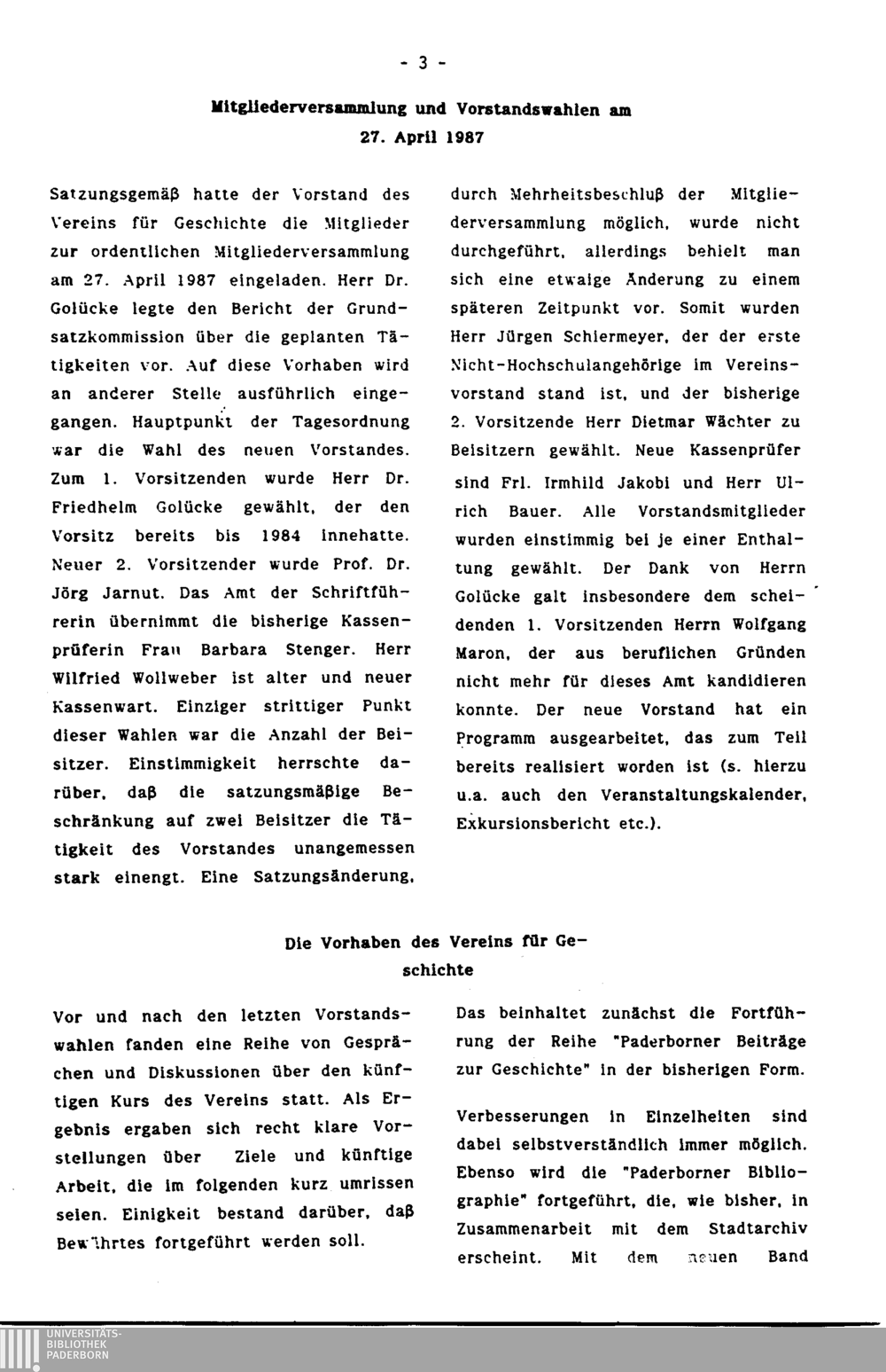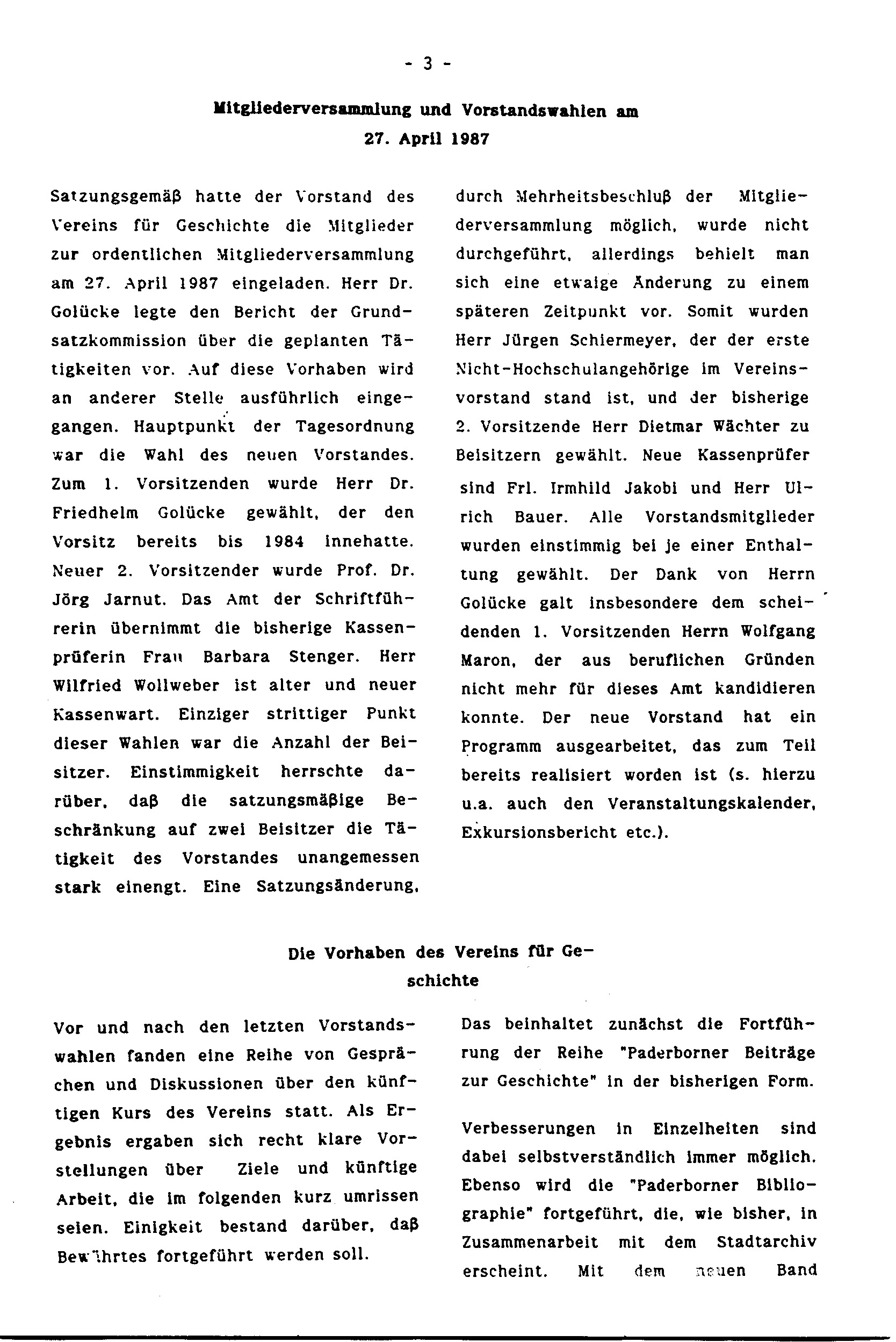 Mitgliederversammlung und Vorstandswahlen am 27. April 1987