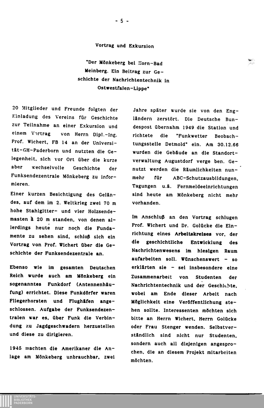 Vortrag und Exkurson "Der Mönkeberg bei Horn-Bad Meinberg. Ein Beitrag zur Geschichte der Nachrichtentechnik in Ostwestfalen-Lippe!
