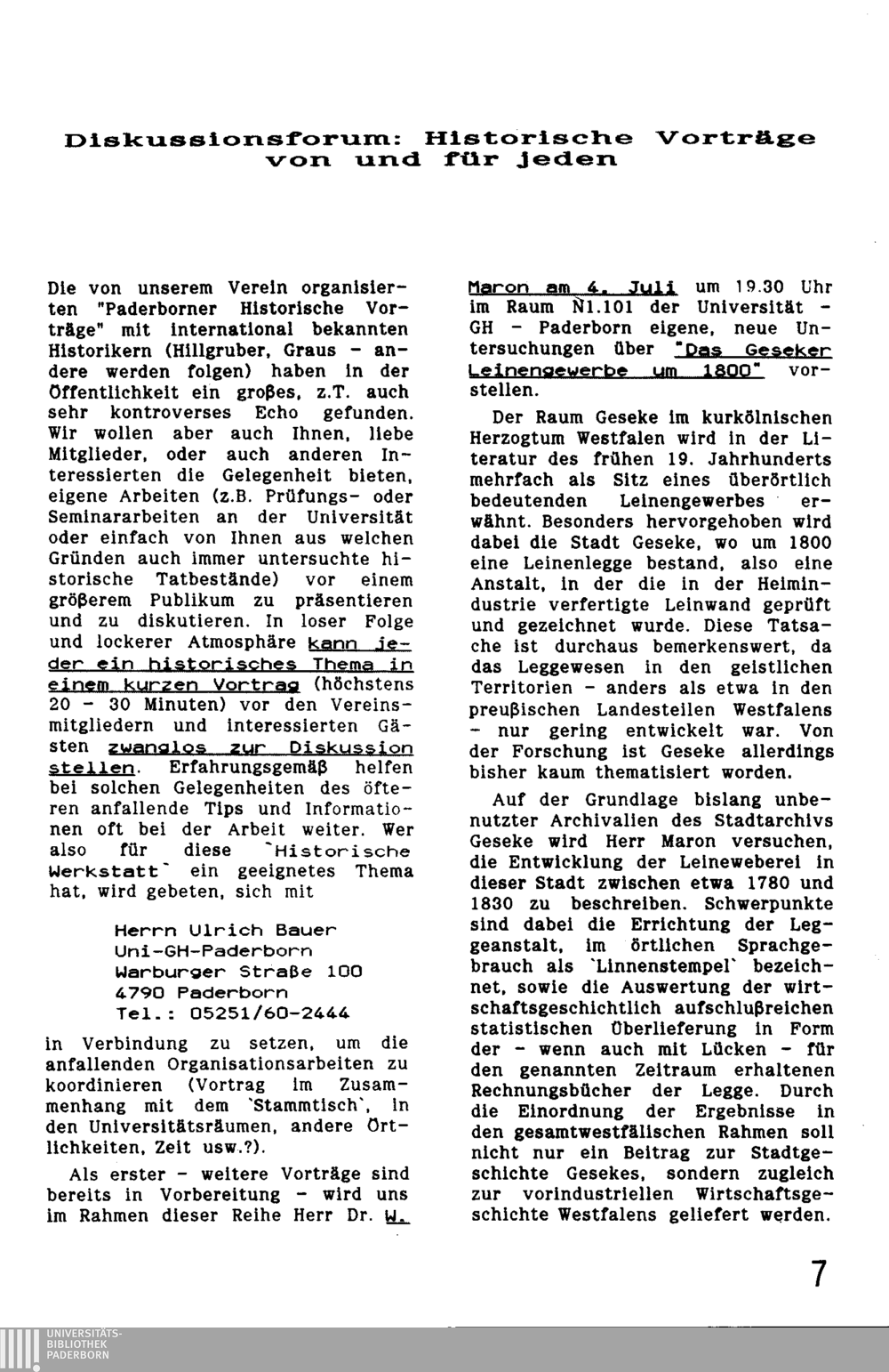 Eröffnung der Veranstaltungsreihe Paderborner Historische Vorträge