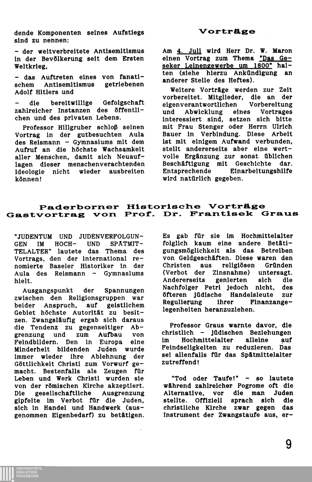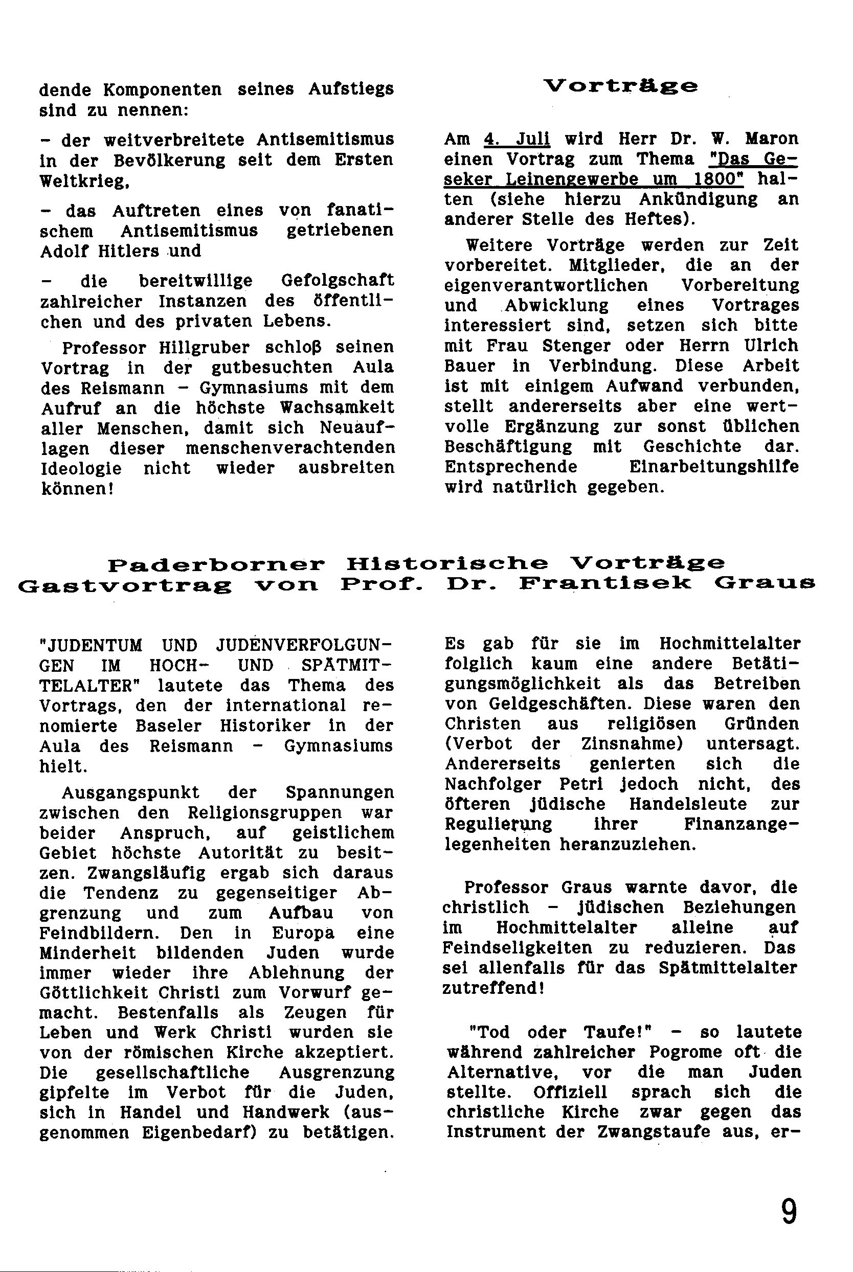 Paderborner Historische Vorträge - Gastvortrag von Prof. Dr. Frantisek Graus